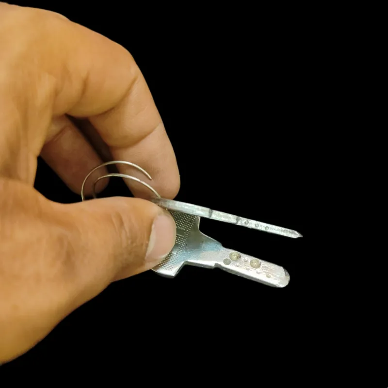 کلیدهای خاصی دارد و روی عرض کلید یا همان قسمت باریکی کلید که در تصویر مشخص است نیز سوراخ دارد یعنی این قفل در جهت بالا و پایین نیز ساچمه دارد.