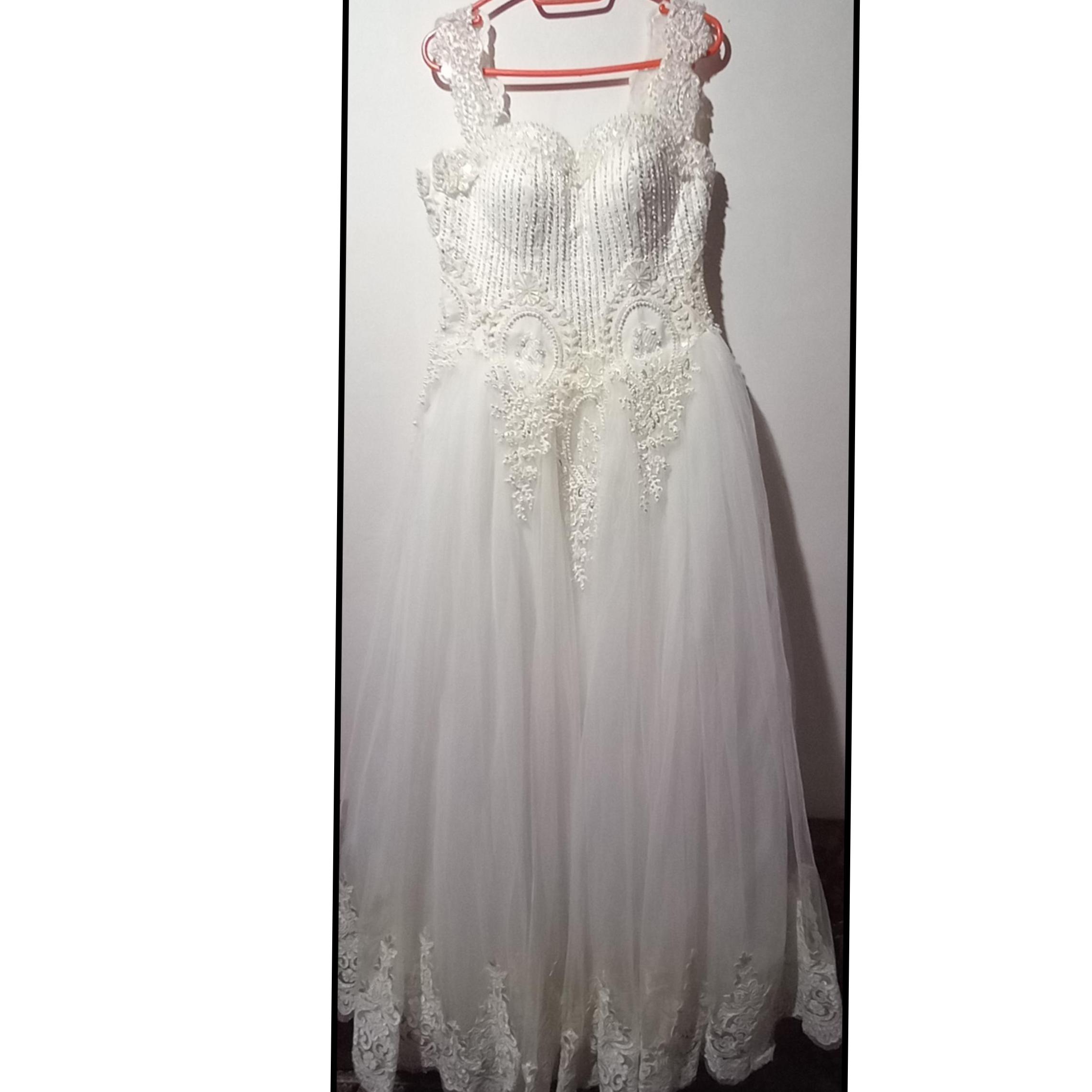 و دوباره یه مدل جدید دانتل بزنید و دامن چندلایه پفی هس و ژپون هم داره شنل هم داره که روی استین پنل کار شده و به همراه تور سر که ست کامل هستند. لباس عروس بسیار زیبا قیمت پایین بعلت فروش فوری. لطفا حمایت کنید باتشکر برای فرمالیته هم میتونید استفاده کنید