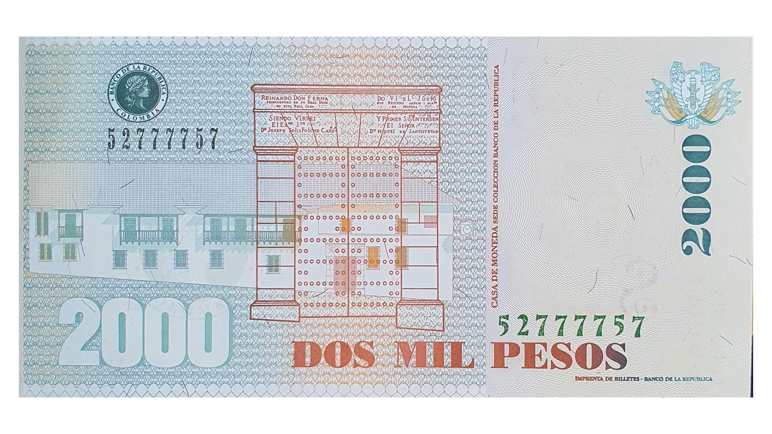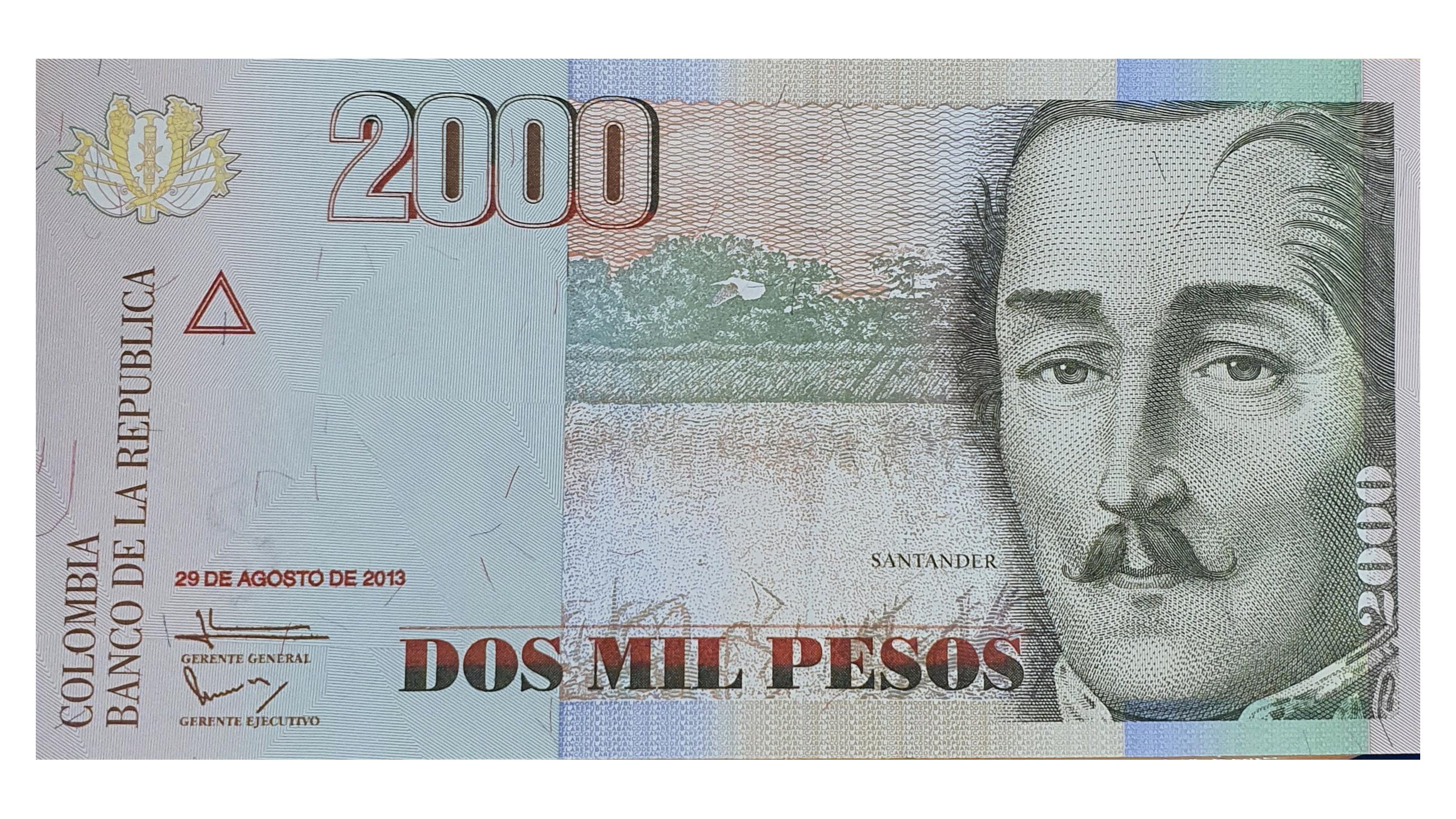 اسکناس 2000 پزو 2013 کلمبیا خط بریل روی فیلیگران