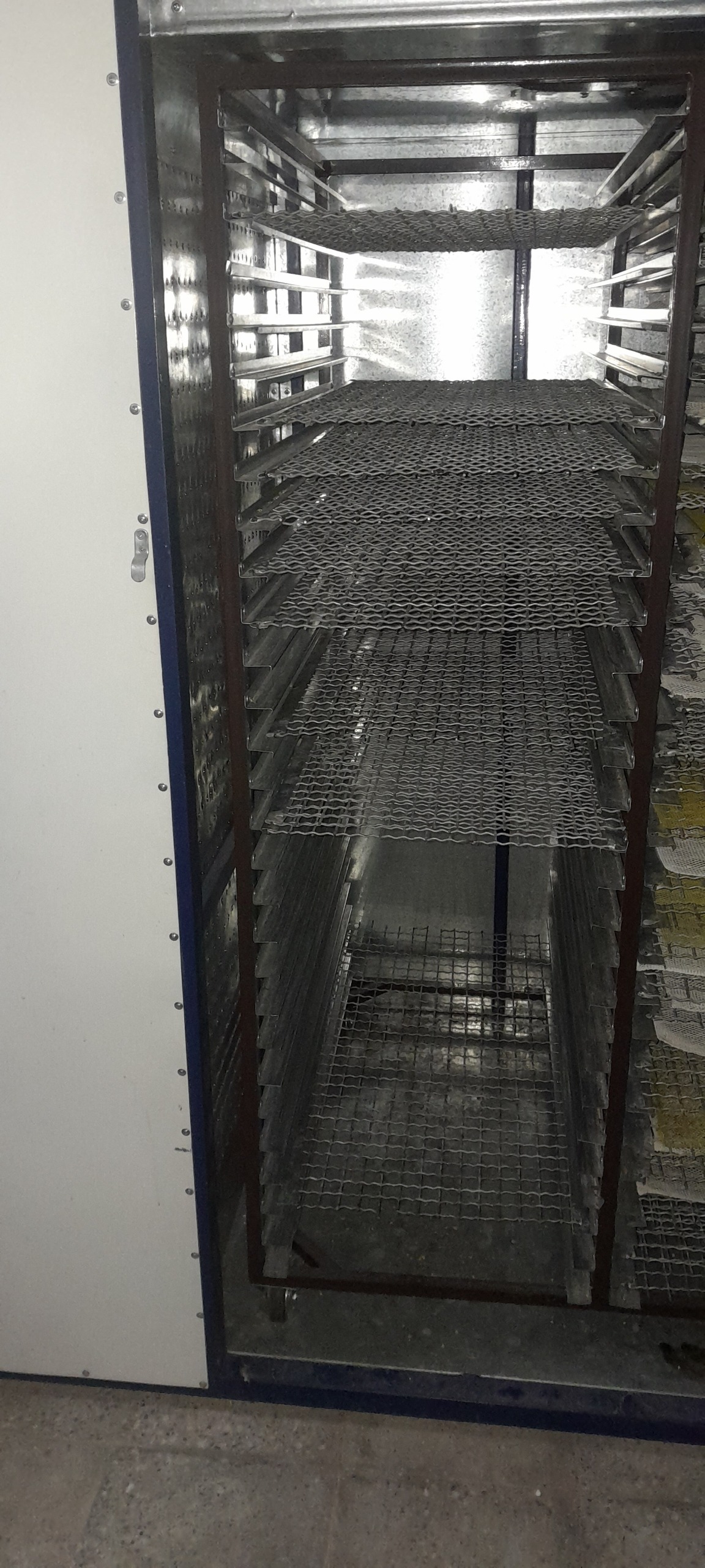 دستگاه تمام دیجیتال میوه خشک کن صنعتی برای انواع میو ها و سبزی و زعفران. کلا 20 روز کار نکرده. با ظرفیت حدود 90 تا 100 کیلو میوه تر و حدود 15 کیلو میوه خشک. دارای 60 سینی 50 سانت در 80 سانت. جنس سینی ها از فنس ضخیم توری می باشد. می توان برای میوه های ریز از توری پلاستکی ضخیم با منافذ کوچک روی آن استفاده کرد که در تصویر نیز مشخص است. تعدادی توری های پلاستیکی نیز ارسال میگردند. دماسنج دیجیتال قابل تنظیم. رطوبت سنج دیجیتال که برای قطع اتوماتیک دستگاه موقع خشک شدن میوه ها می باشید. دارای مشعل نو. دارای عایق حرارتی جهت جلوگیری از هدر رفت گرما و کاهش مدت زمان روشن بود مشعل گاز. دارای دمپر رطوبتی. جنس درجه 1 ورق ضخیم می باشد. در خصوص نحوه کارکرد دستگاه این توضیح ضروری است که خشک شدن میوه ها هر دو ساعت یکبار باید سینی ها جابجا گردد یا اینکه اگر هواکش اضافه ای نصب گردد نیاز به جابجایی سینی نیست .الان یک هواکش دارد جهت چرخش گرما. نصب هواکش حدود3میلیون هزینه دارد که از هزینه خرید کسر شده است. نو بدون کارکرد این دستگاه بین 50 تا 70 میلیون قیمت دارد. و این دستگاه فرقی با نو ندارد. همراه دستگاه برگه آموزش کار با دستگاه نیز ارسال میشود دستگاه حراج شده است.با تشکر