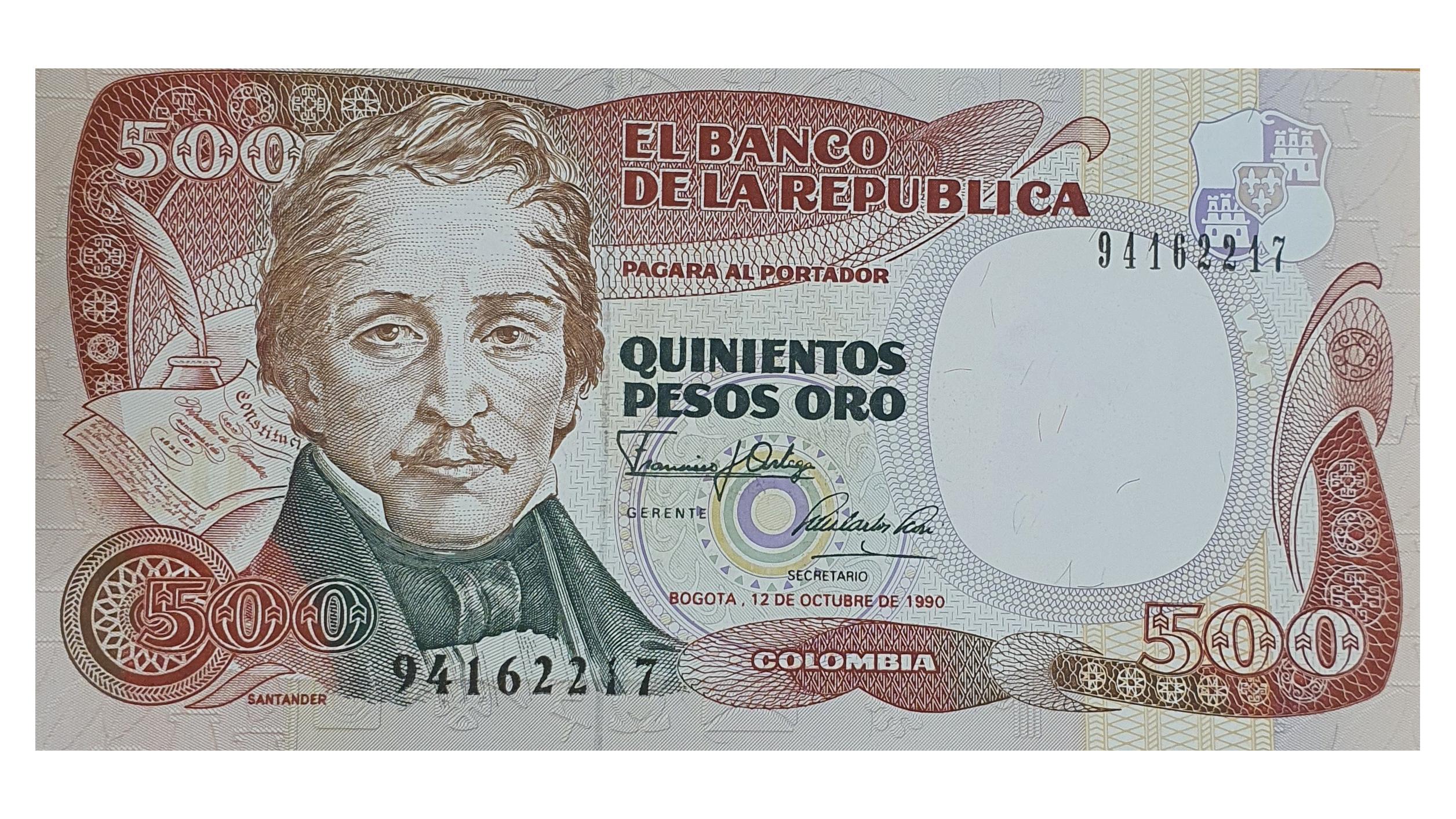 اسکناس 500 اورو پزو 1990 کلمبیا تاریخ کمیاب