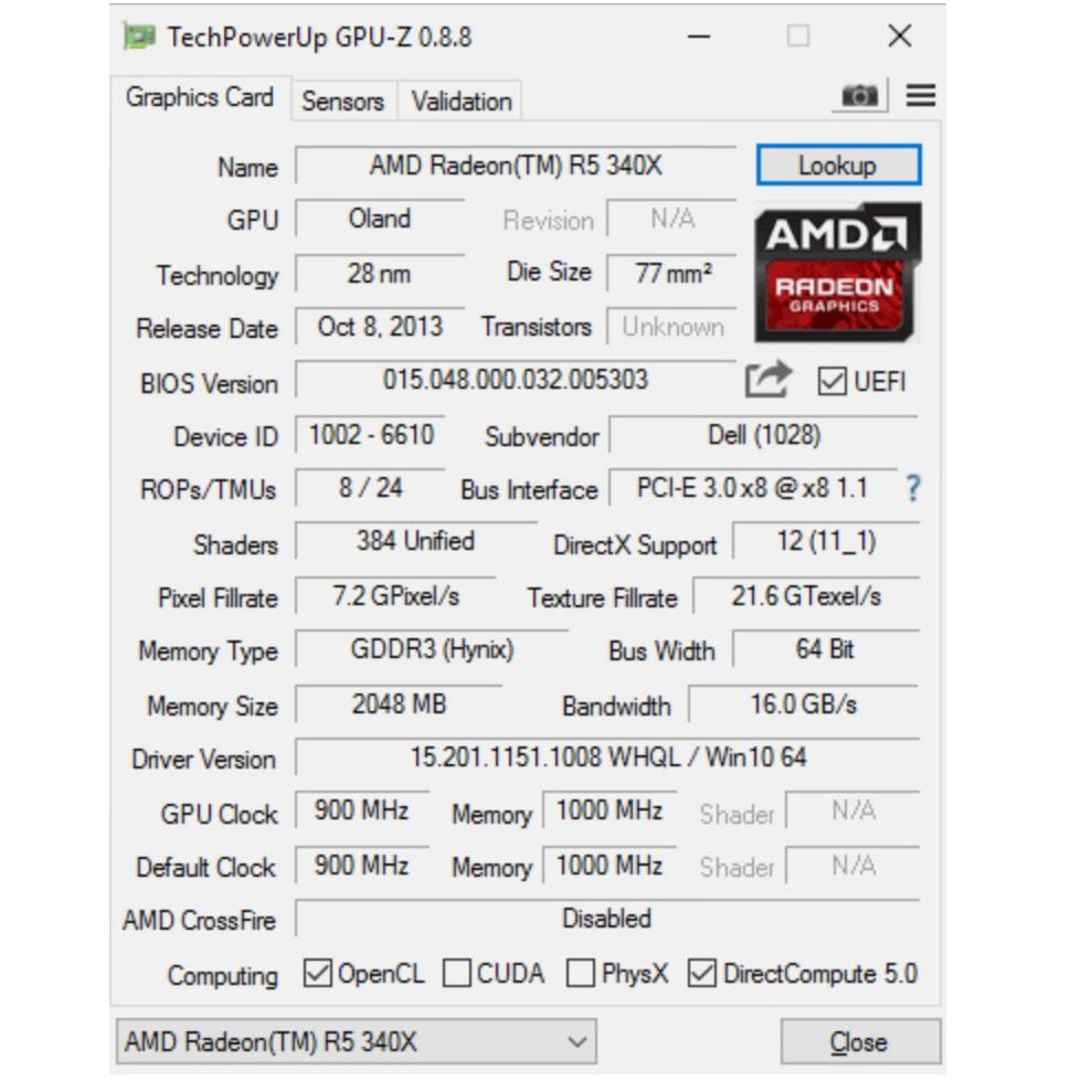 کارت گرافیک کامپیوتر AMD R5 340X با 2 گیگ