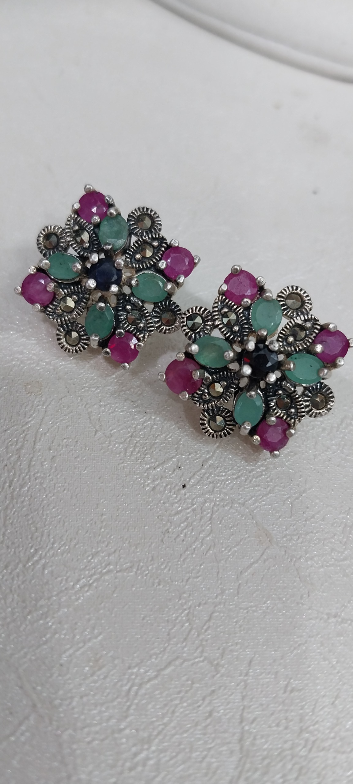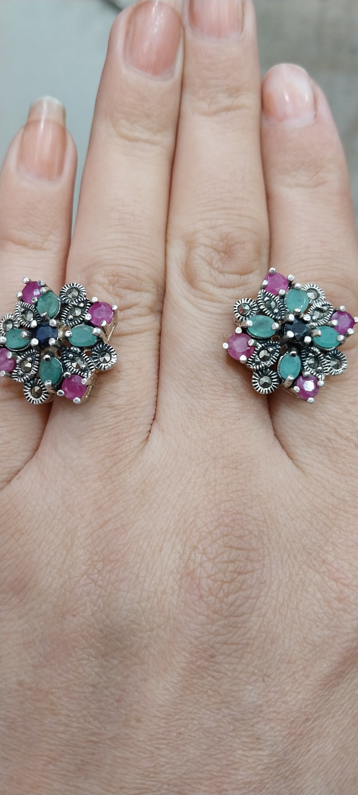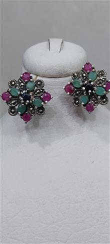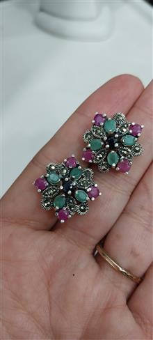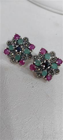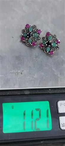 گوشواره میخی نقره نگین زمرد و یاقوت جواهری11.21