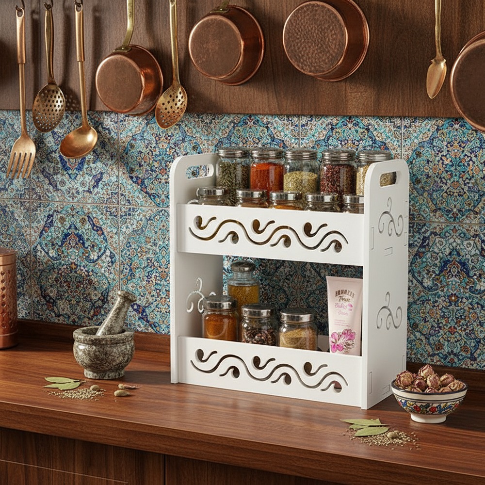 سلین ، یک شلف رومیزی است ، اما در پشت آن دو سوراخ آویز قرار داده شده تا در صورت نیاز به ویژه داخل حمام بتوانید آن را به دیوار متصل نموده و به صورت دیواری از آن استفاده کنید . دو طبقه مجزا برای ایجاد فضای بیشتر و قرار دادن لوازم و وسایل مختلف به صورت تفکیک شده با امکان دسترسی آسان از جمله ویژگی های شلف سرویس بهداشتی است . قسمت بالای دیواره های شلف ، فرم دستگیره ای طراحی شده اند تا در صورت نیاز ، کابر بتواند به آسانی آن را برداشته و جابه جا نماید . دیواره های محافظی برای هر طبقه در قسمت جلو و عقب طراحی شده که مانع از بیرون ریختن لوازم داخل هر طبقه خواهد شد ، نکته جالب توجه برای این دیواره ها این است که طرح روی آنها در جلو و عقب با یکدیگر متفاوت بوده و این موضوع باعث دوچندان شدن جذابیت کالا شده . آشپزخانه منزل ، اتاق ، سرویس بهداشتی ، حمام و یا هر جای دیگری که در محیط پیرامون خود نیاز داشته باشید ، روی میز و یا دیوار می توانید از شلف دو طبقه سلین استفاده کنید .