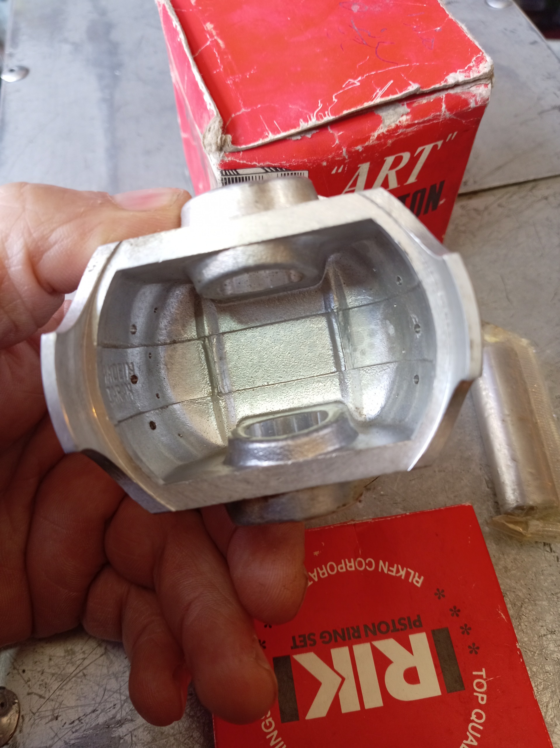 رینگ و پیستون موتورسیکلت هوندا ARTژاپن قدیمی مال حدود 30 سال پیشه دقیقا نمیدونم مال چه موتوریه احتمالا سی بی200 باشه هر کی میدونه پیام بده ممنون میشم