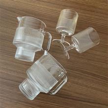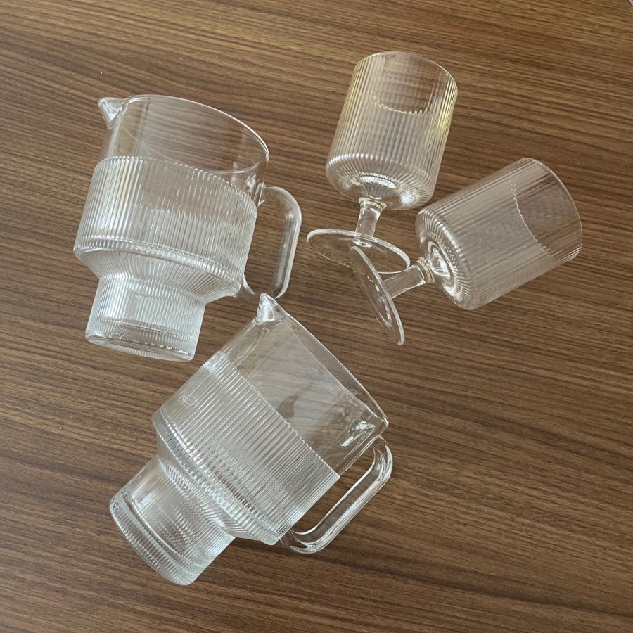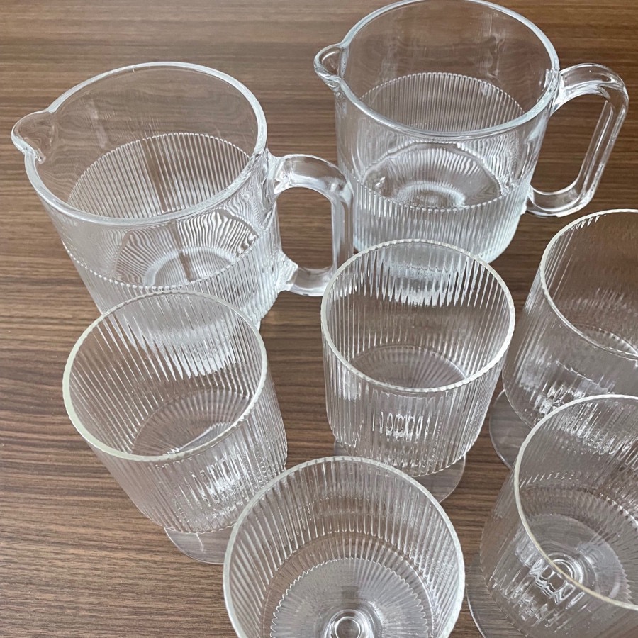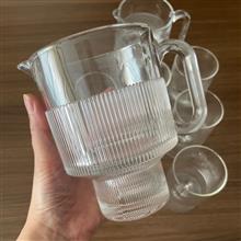 ست پارچ و لیوان شیشه ای شیار دار، شیار ها حالت برجسته دارند، کاملا نو، حجم پارچ ها مناسب 3/4 نفر، پایه پارچ جزء حجم پارچ هست ، جعبه معمولی دارند ولی با بسته بندی مناسب ارسال میشه، کار اسپرت و مینیمال برای سر میز ،