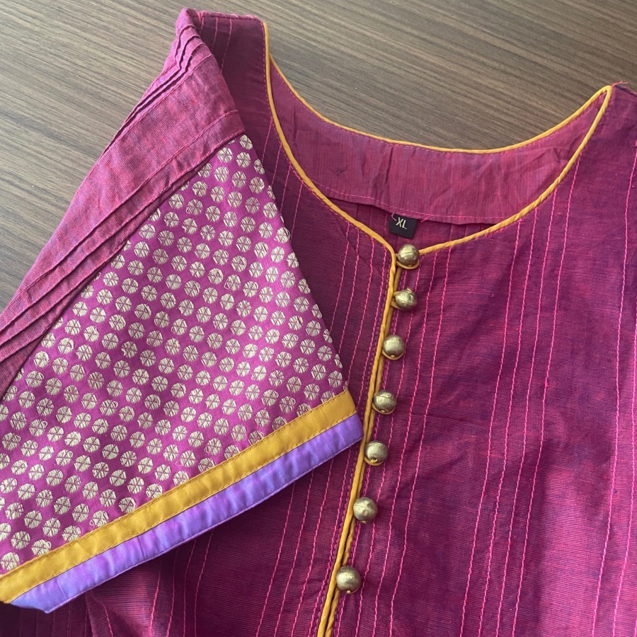 پیراهن تونیک نخی هندی، اگه از این سبک کارها خوشت میاد حتما اینکارو می پسندی، در عین اینکه زیاد شلوغ نیست ولی جلوه داره، پشت و جلو کار رگه دوزی، پایین کار تکه دوزی، کنار کار چاک38 سانتی داره، کاملا نو، دکمه های جلو یقه کاربردی و قابل باز شدن از جنس برنج،
