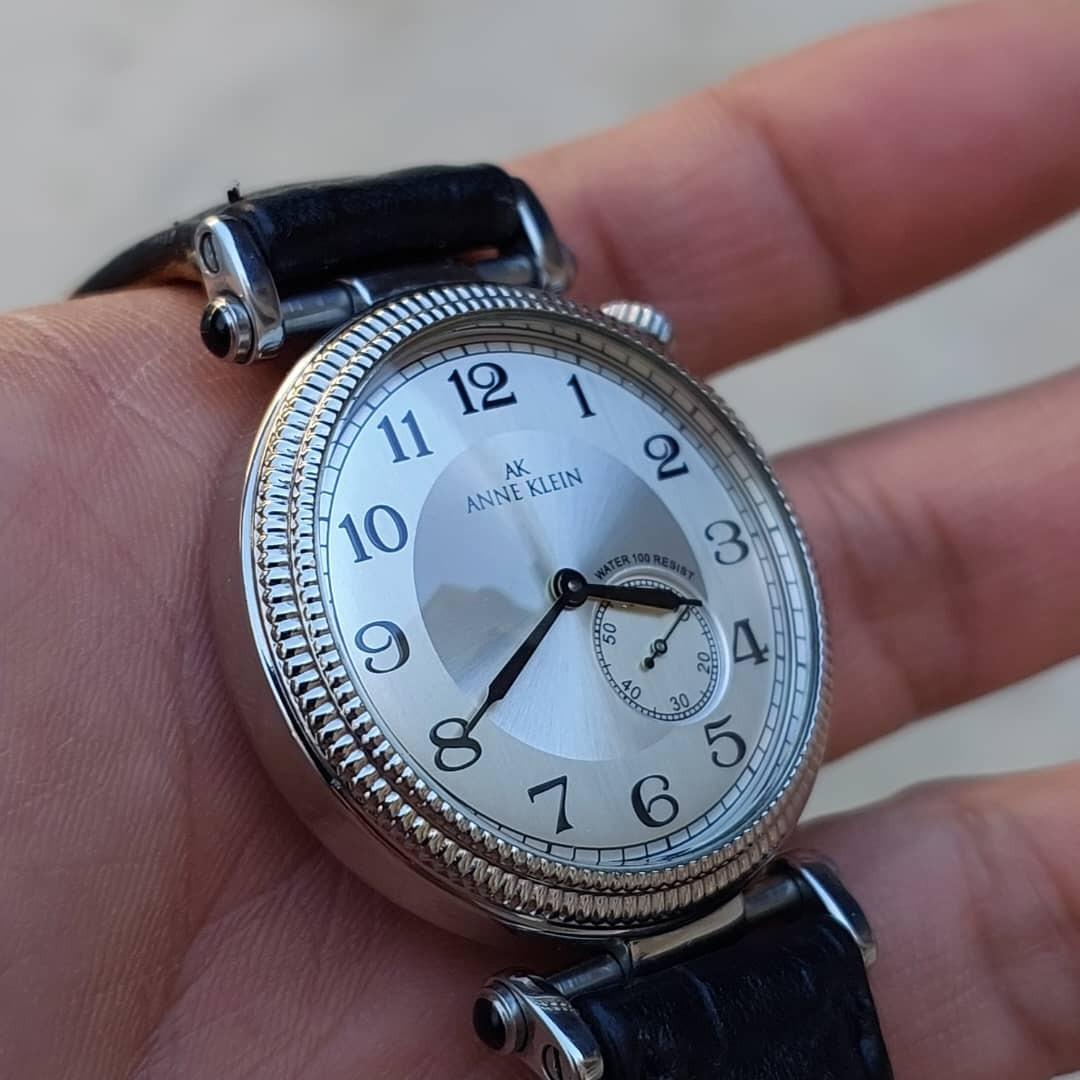 ساعت مچی آننی کلین بسیار زیبا تلفیقی از حال وگذشته به نوعی طرح کلاسیک صفحه بسیار زیبا و قوسی شکل ثانیه بغل در حد آک بند رو عوضکردم بهمراه قفل چون بیشتر بهش میاد موتور سوییس مونتاژ تایلند دوستان سوالی داشتند میتونید قبل از خرید بپرسید
