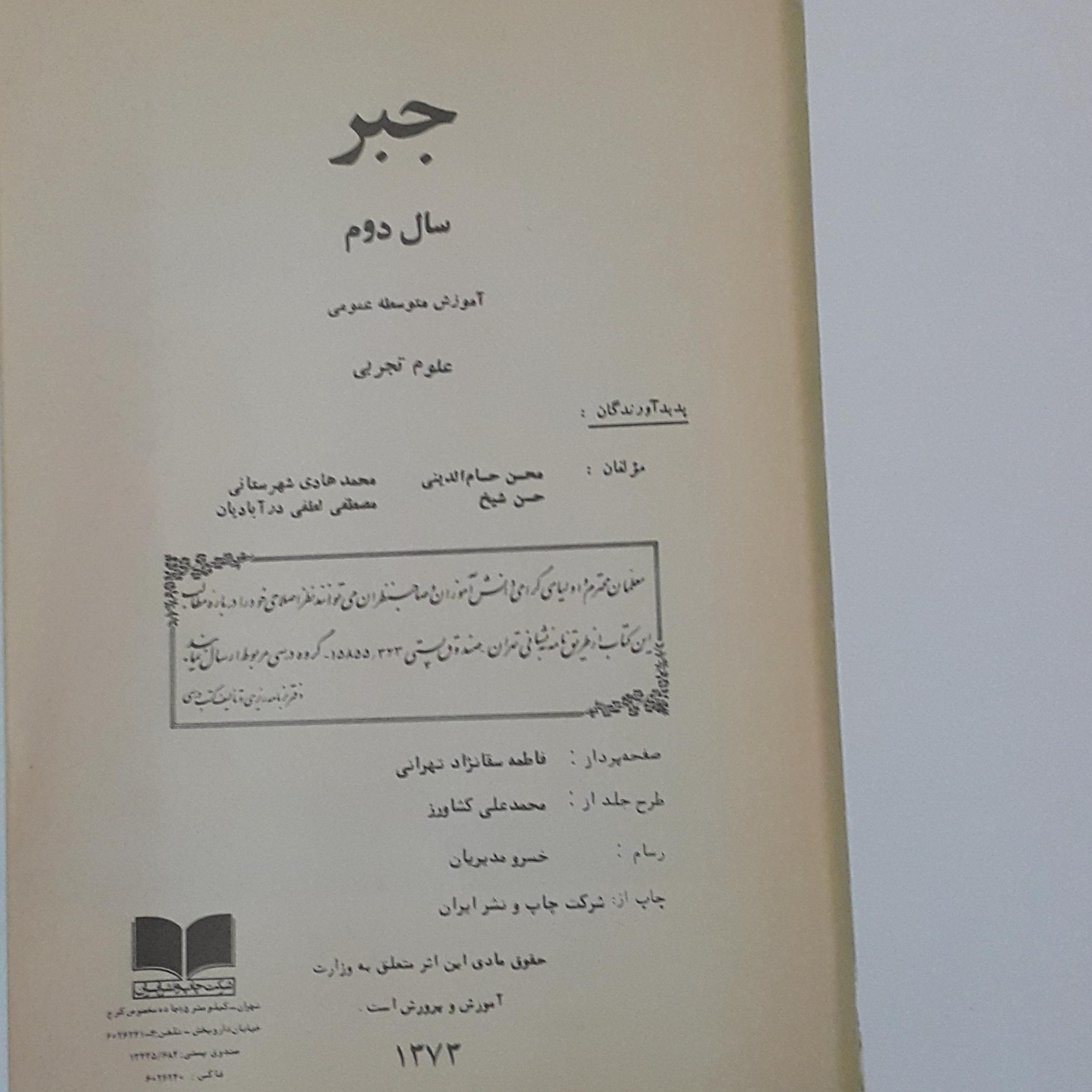 جبر دوم دبیرستان1372 تجربی در حد نو