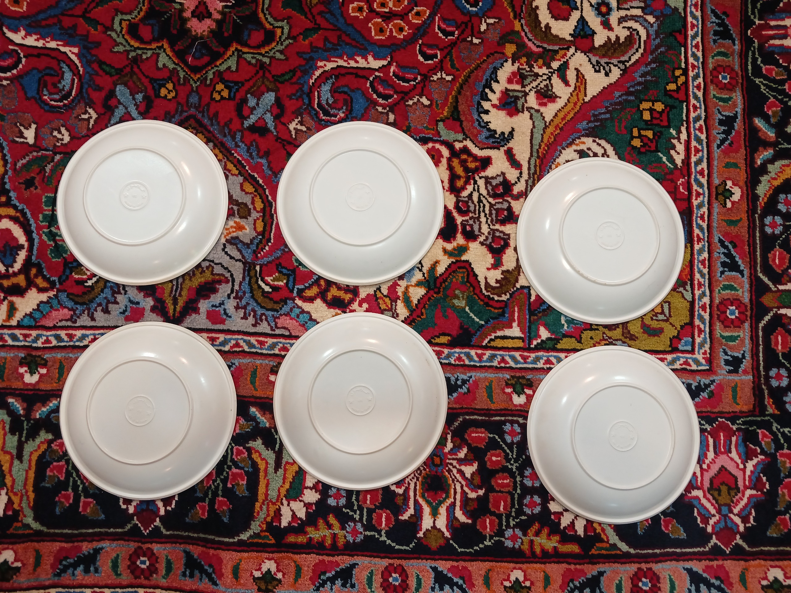 تعداد 6 عدد بشقاب ملامین قدیمی سوپخوری سالم و بدون ایراد قابل استفاده کلکسیونی اندازه طول قطر 22 سانت خیلی تمیز و مرتب مونده.