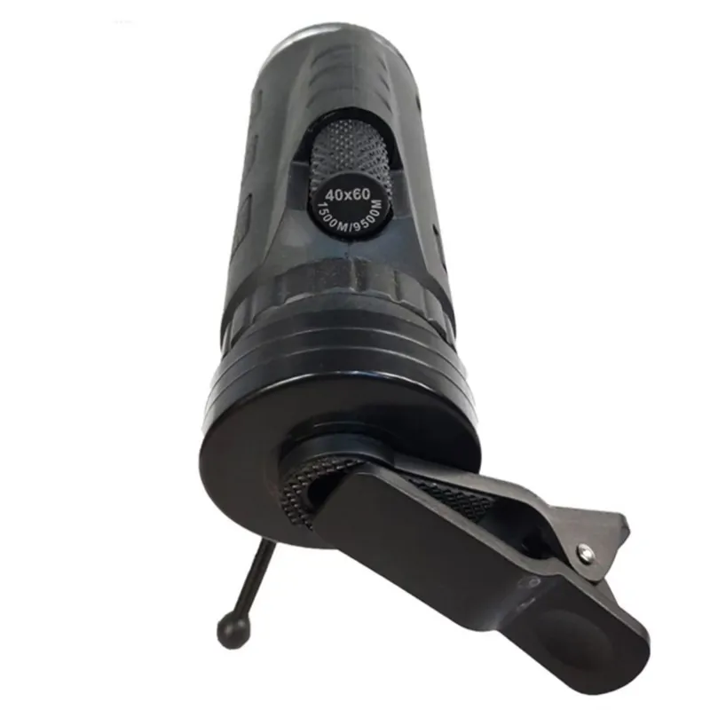 دوربین پایه دار مونوکولاریکی از کاربردی ترین و مفید ترین ابزار های طبیعت گردی و عکاسی است. با این دوربینمیتوانید فواصل دور را با گوشی موبایل خود مشاهده نمایید.به صورت عادی نیز میتوان تا 1500 متر را به راحتی دید.  دوربین 40 در 60 مونکولار  دارای یک اهرم  در بالا میباشد که فوکس لنز را با توجه به فاصله پیش رو تنظیم میکند. دوربین دارای یک عدد گیره میباشد که به وصیله آن میتوانید هر نوع گوشی را به لنز آن نصب کرد و عکس های بسیار باکیفیتی را از نمای دور بگیرید.