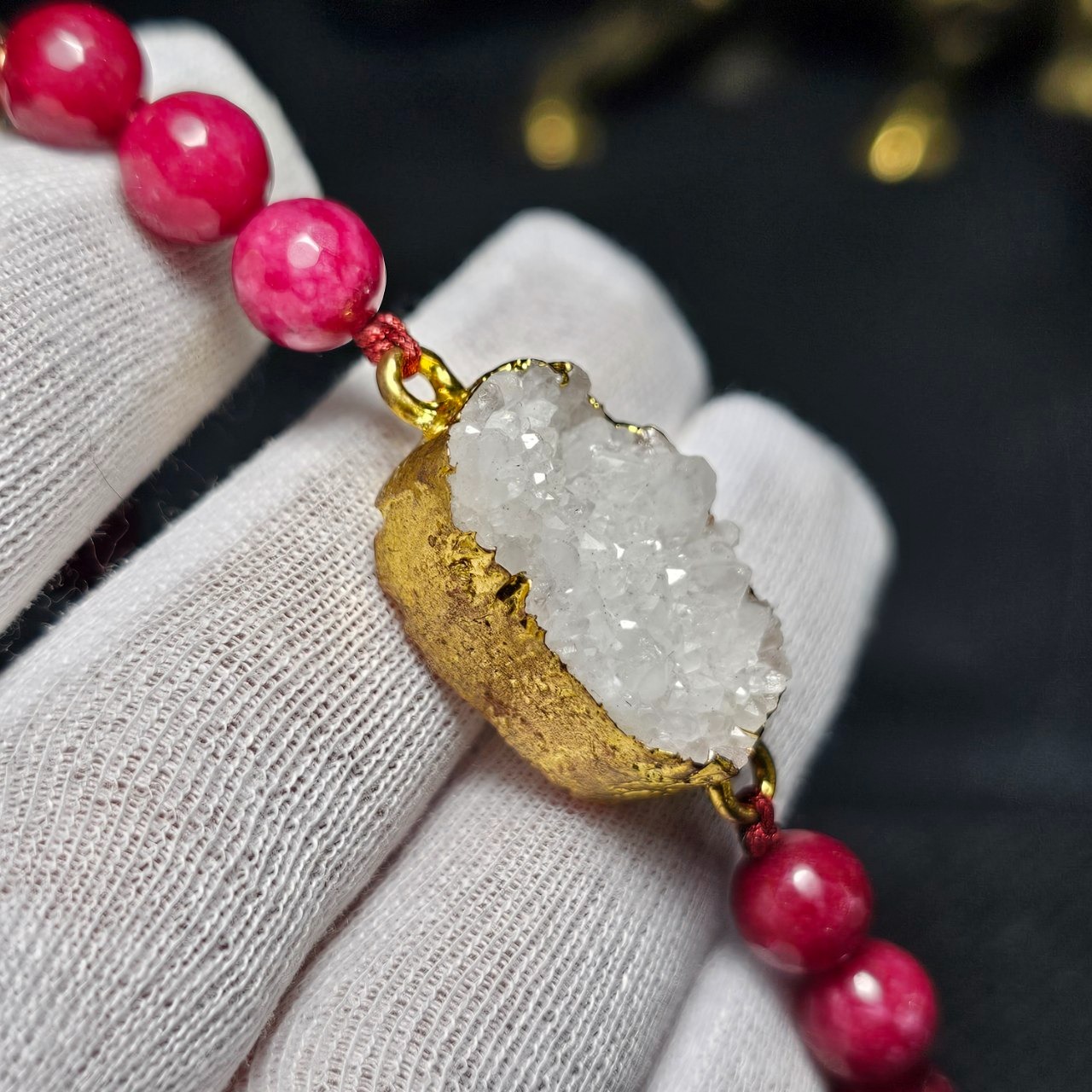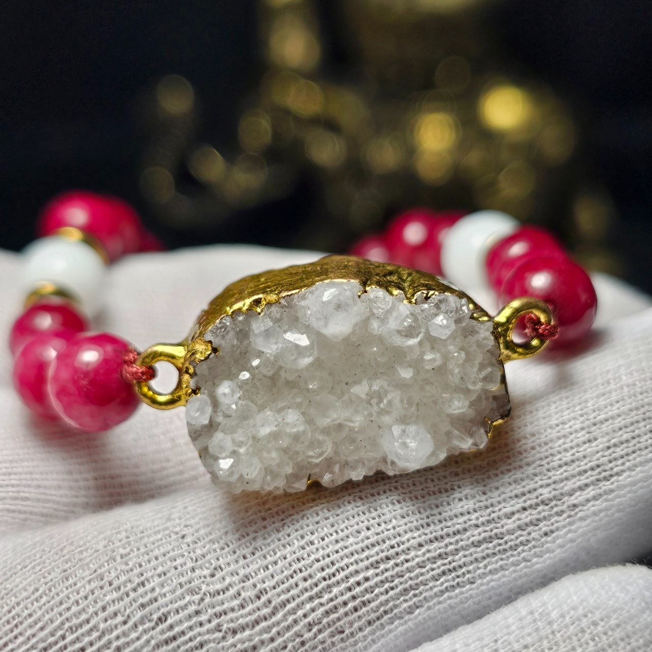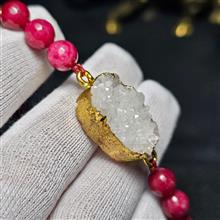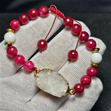دستبند سنگ طبیعی ژئود معدنی با مهره جید یاقوتی