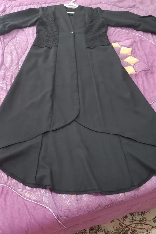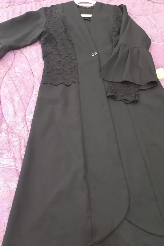 مانتو بسیار شیک و مجلسی هست کاملا مشکی هستش برای اینکه طرحش دیده بشه نور انداختم برای ایام محرم عالیه. در مانتو گیپور کار شده