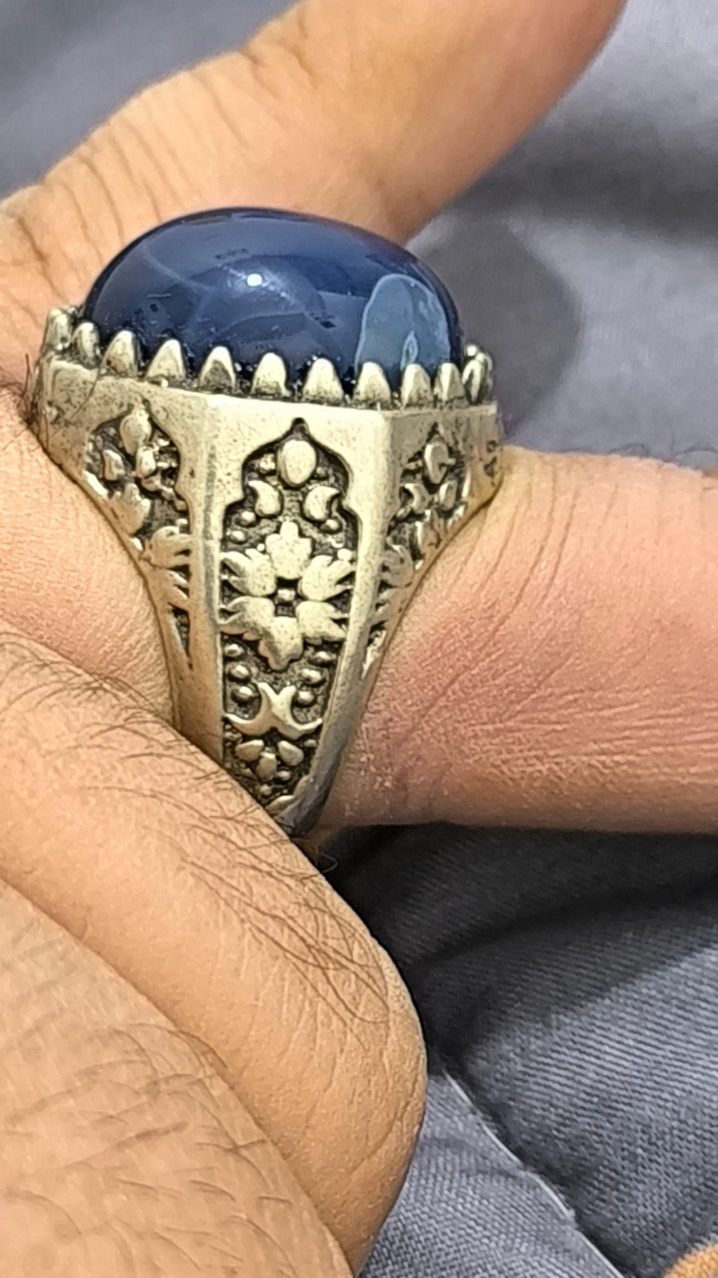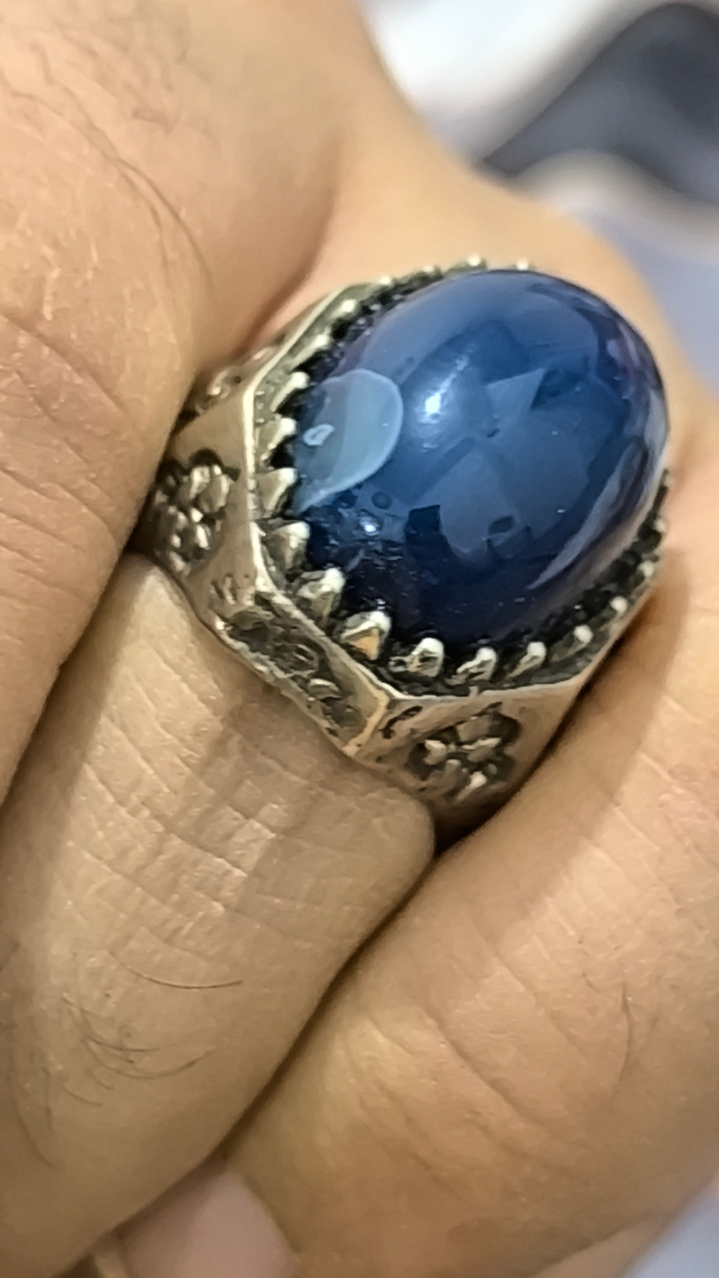 انگشتر مردانه نقره عیار پایین ولی جون دار با یه نگین عقیق سلیمانی سورمه ای آبدار عقیق سورمه ای جزو عقیق های بسیار نایاب هست مخصوصا اگر ابدار باشه این انگشتر قشنگ خوراک انگشت هستش یه کار شیک و فوقالعاده زیبا الان جدا گونه فقط یک میلیون تومان نگینش راحت قیمت داره حالا رکابش جدا پس منصفانه شرکت کنید خواهش میکنم برادرانه خواهش کردم دیگه مزائده نمیزارم چون پول لازمم حراج کردم همه چیزو