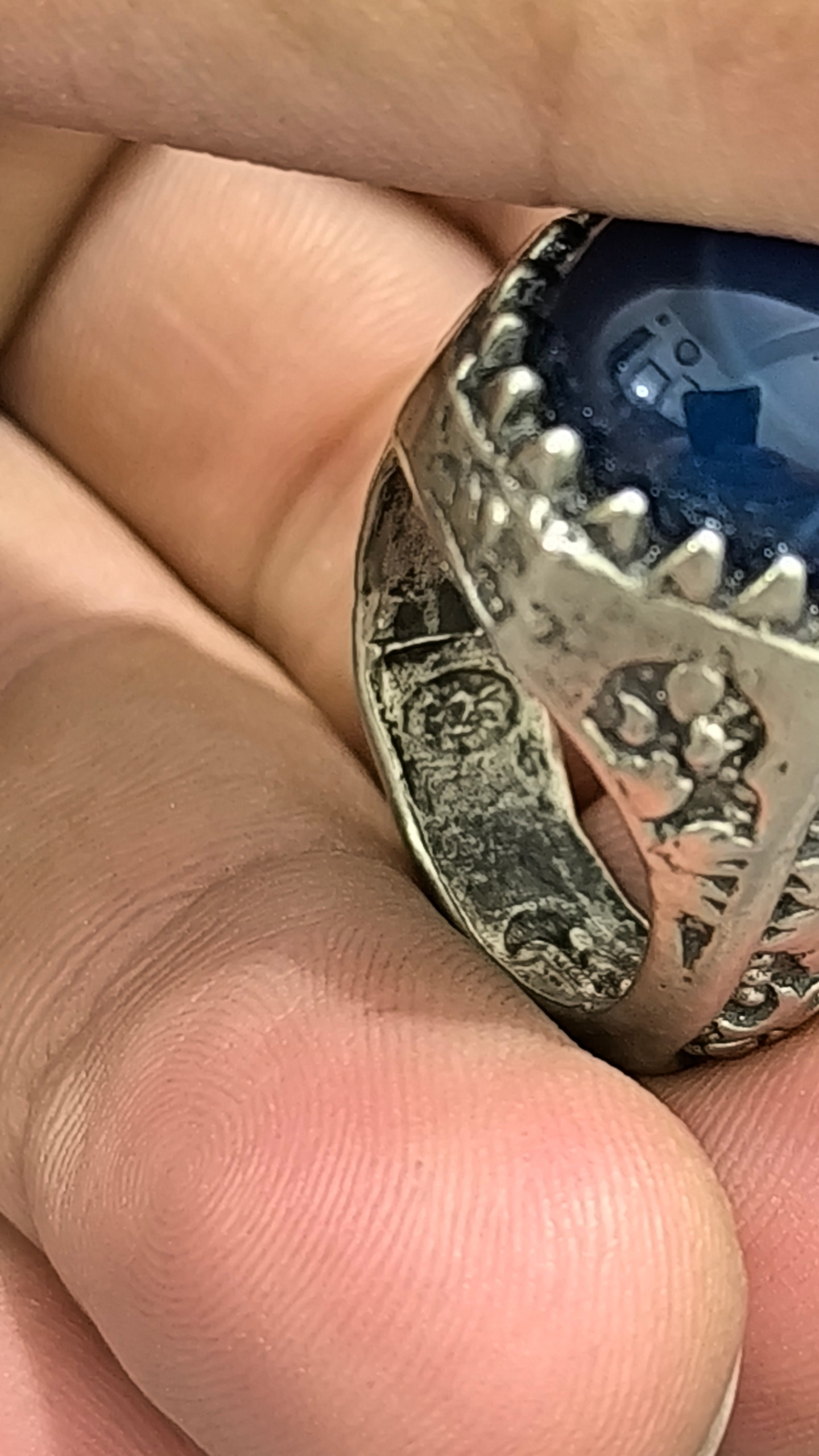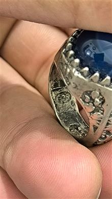 انگشتر نقره عیار پایین نگین عقیق سورمه ای آبدار