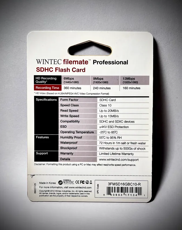 کارت حافظه SDHC برند Wintec اصل کره وارداتی