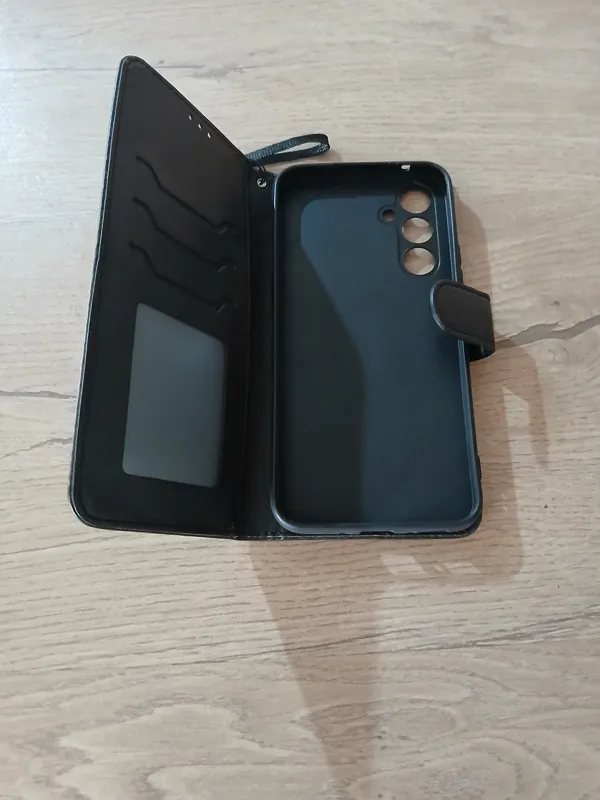 کیف گوشی سامسونگ مدل a54رنگ مشکی حالت کتابی تمیز و دارای بند خیلی جالبه