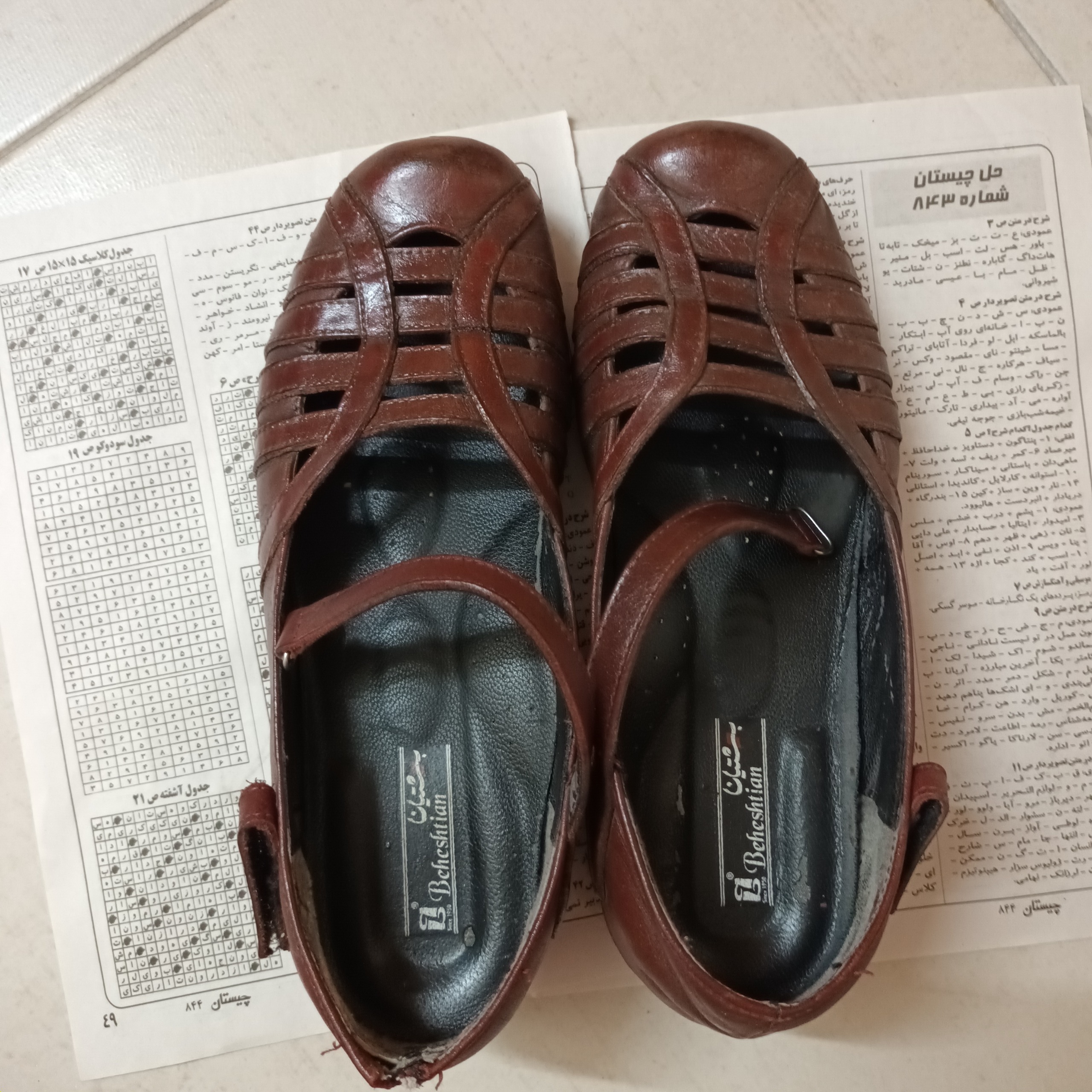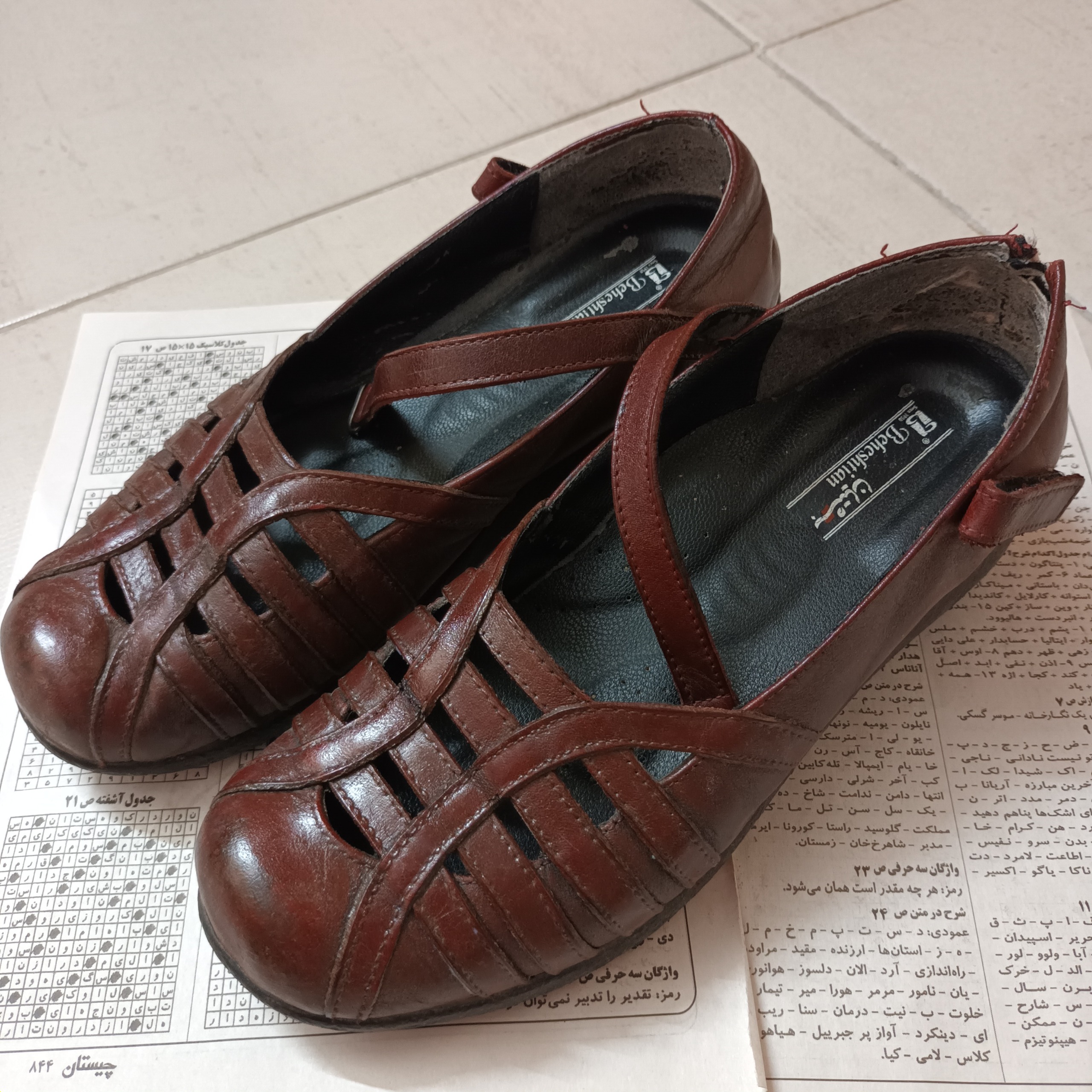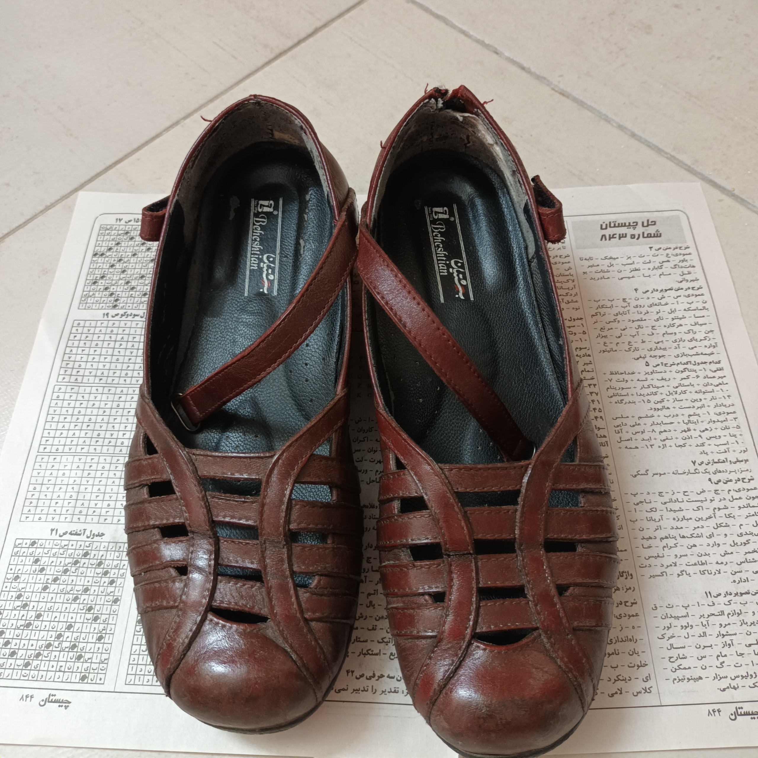 کفش زنانه چرم طبیعی زرشکی سایز 38 کارکرده