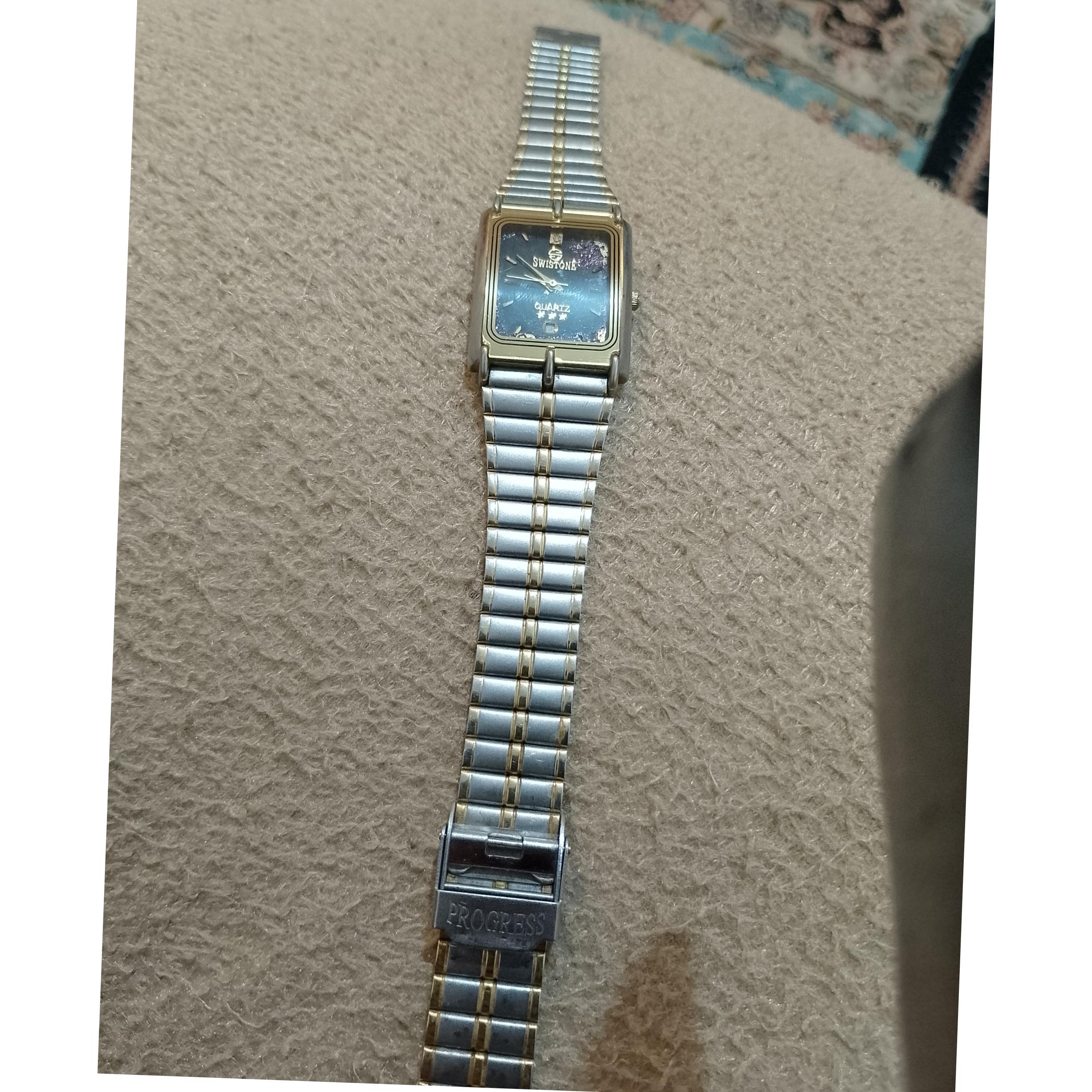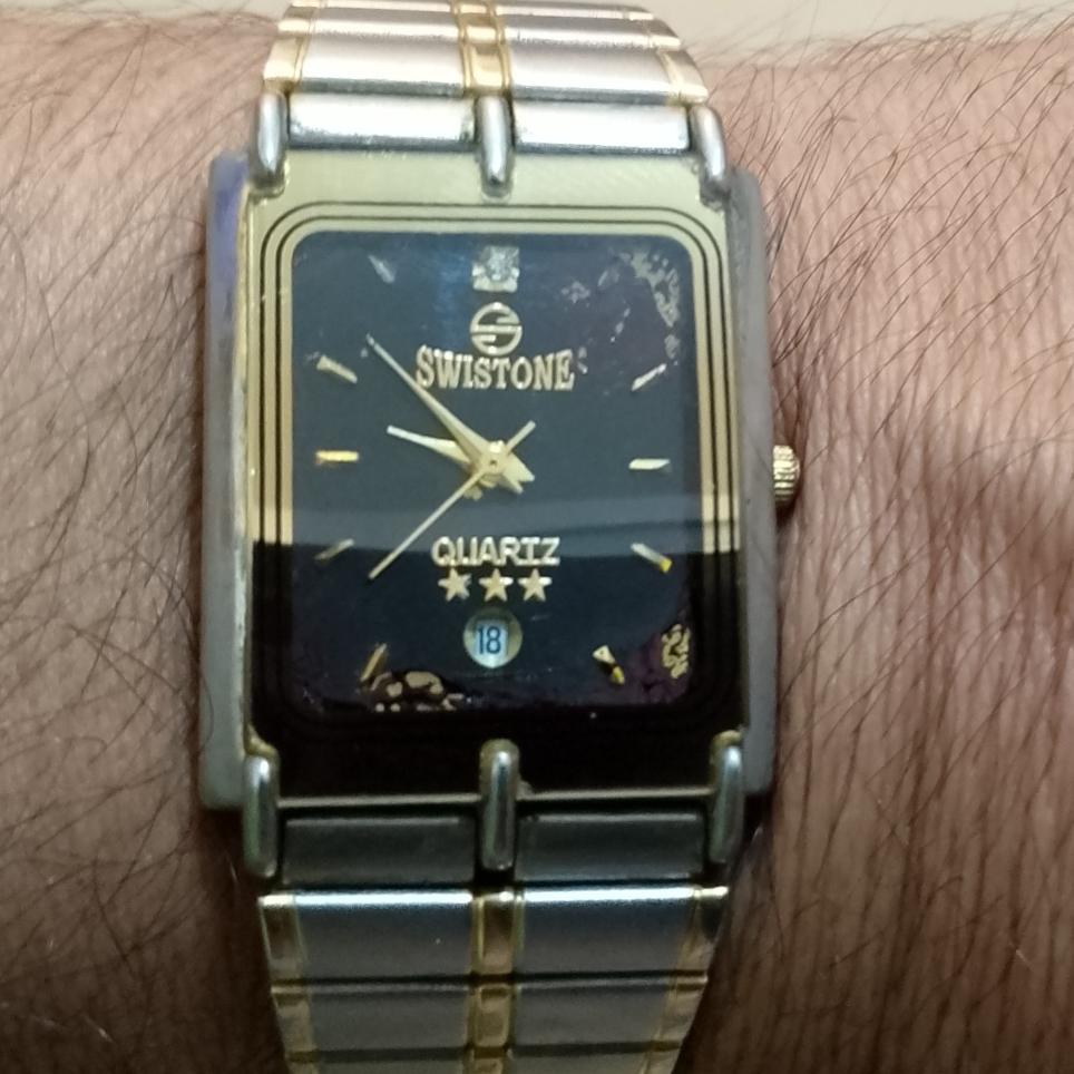 سلام ساعت سویستون ولی کمی از صفحه رنگ پریدگی دارم و دیگه عیبی نداره دقیق و در حد نو . خیالتون راحت بابت کارکردش . دارای تقویم و فعلا باتری داره و نو هستش و تا زمان فروش با همان باتری ارسال میشه اگر تمام شد که دیگه تعویضش با خریدار