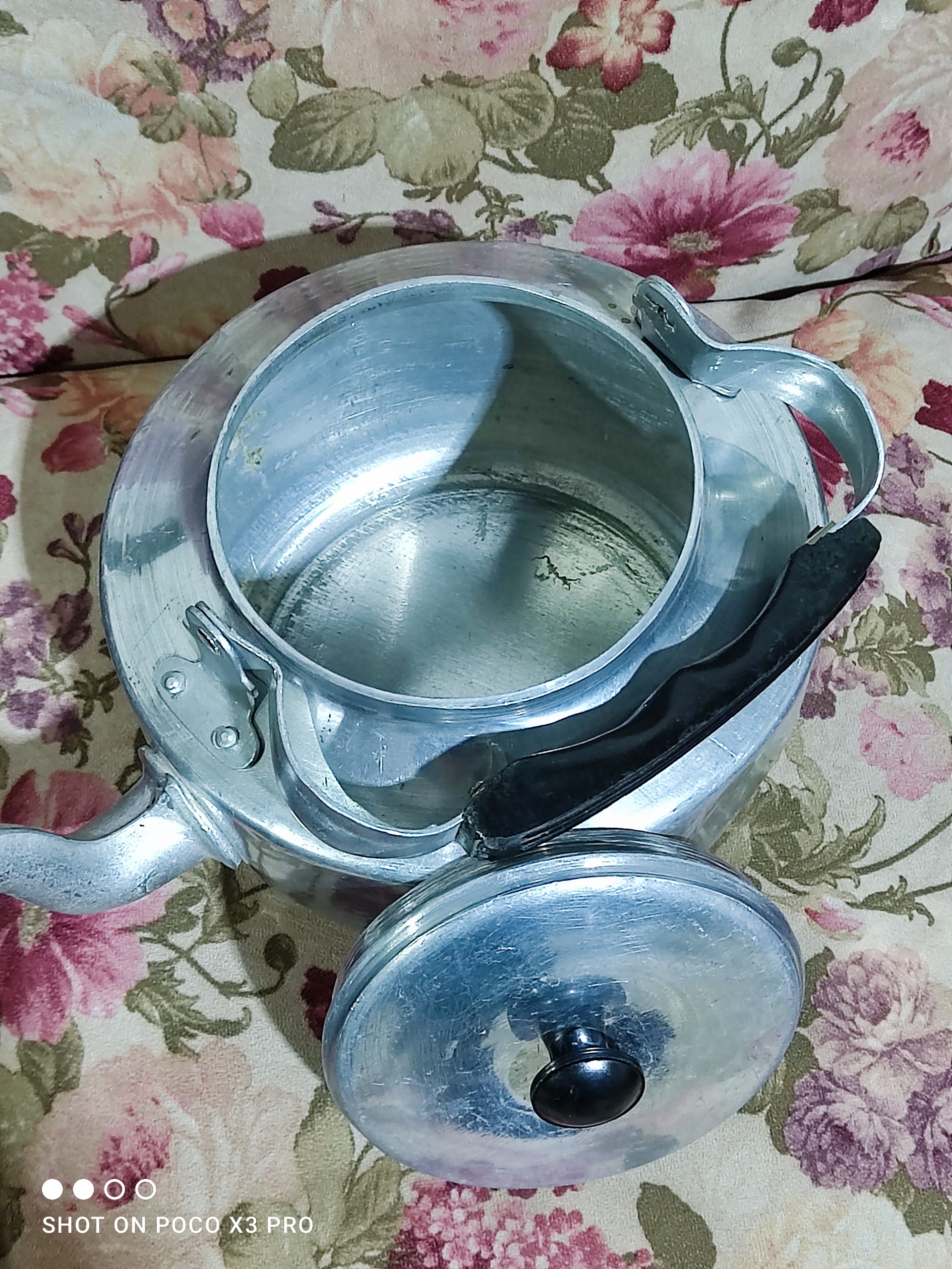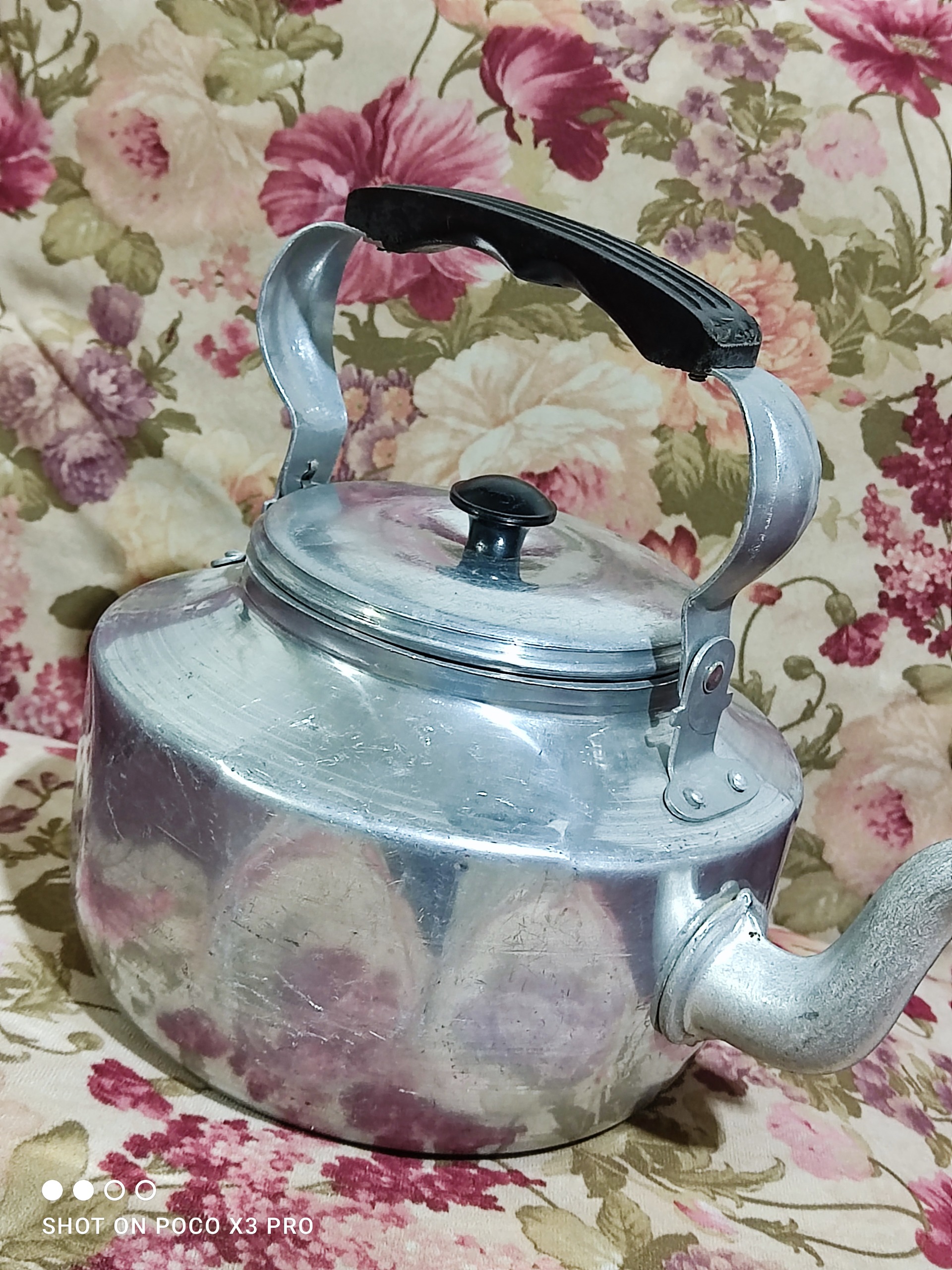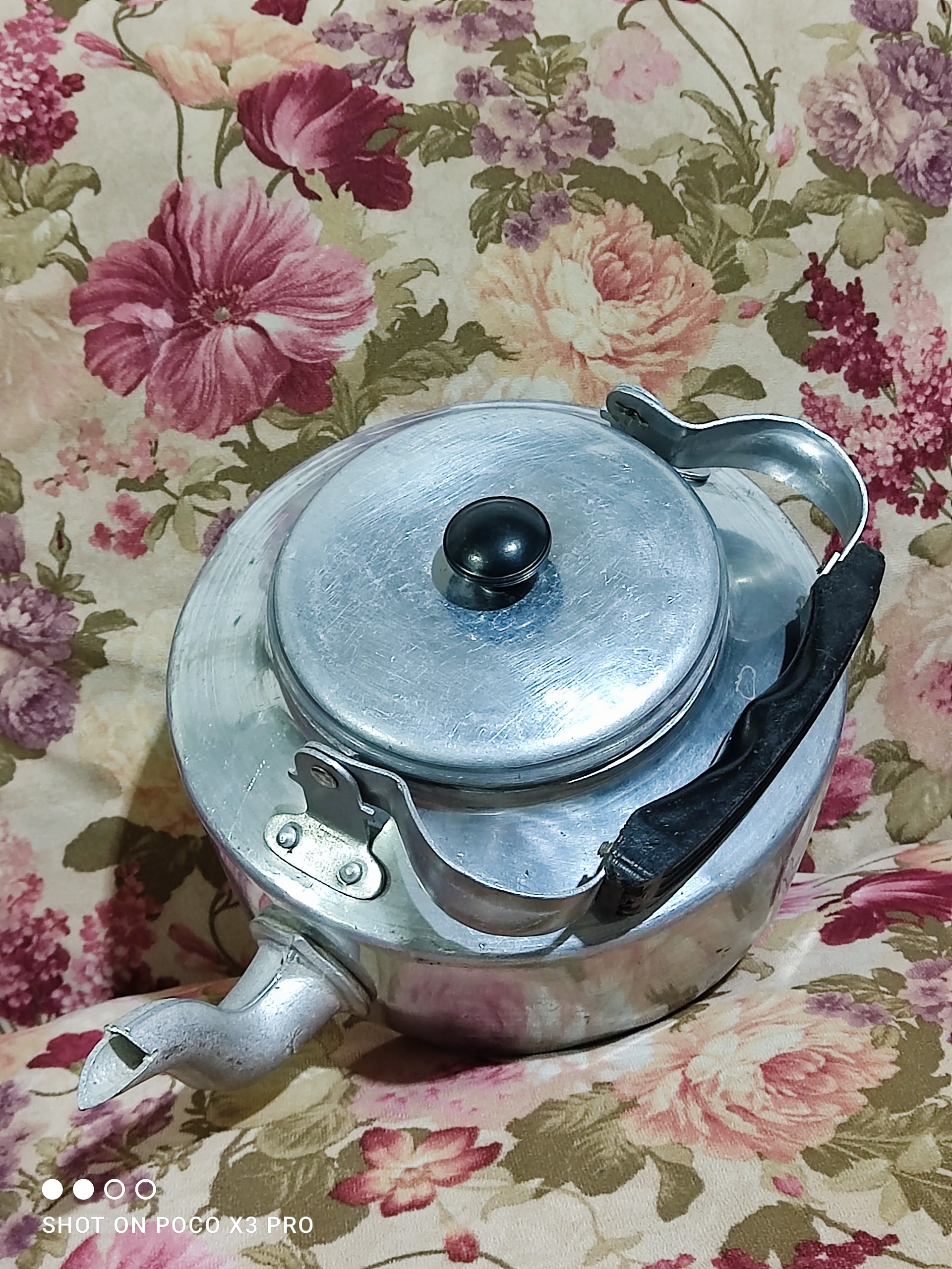 یک عدد کتری آلومنیومی قدیمی استفاده نشده نو نو آک مطابق تصاویر سایزش تقریبا سه چهار لیتری میشه طراحی این کتری خاص و زیبا هست چند ضلعیه شبیه لونه زنبوری دستشم که خاصه وسطش نسوز تعبیه شده محکم و جوندار