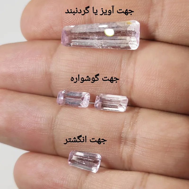 وزن مجموع 17/05 قیراط/ابعاد گوشواره ها برای هر دو قطعه 10×5 میلی متر/ابعاد نگین مناسب برای انگشتر 10×5 میلی متر/ابعاد قطعه بزرگ مناسب ساخت آویز یا گردنبند 24/5×9 میلی متر