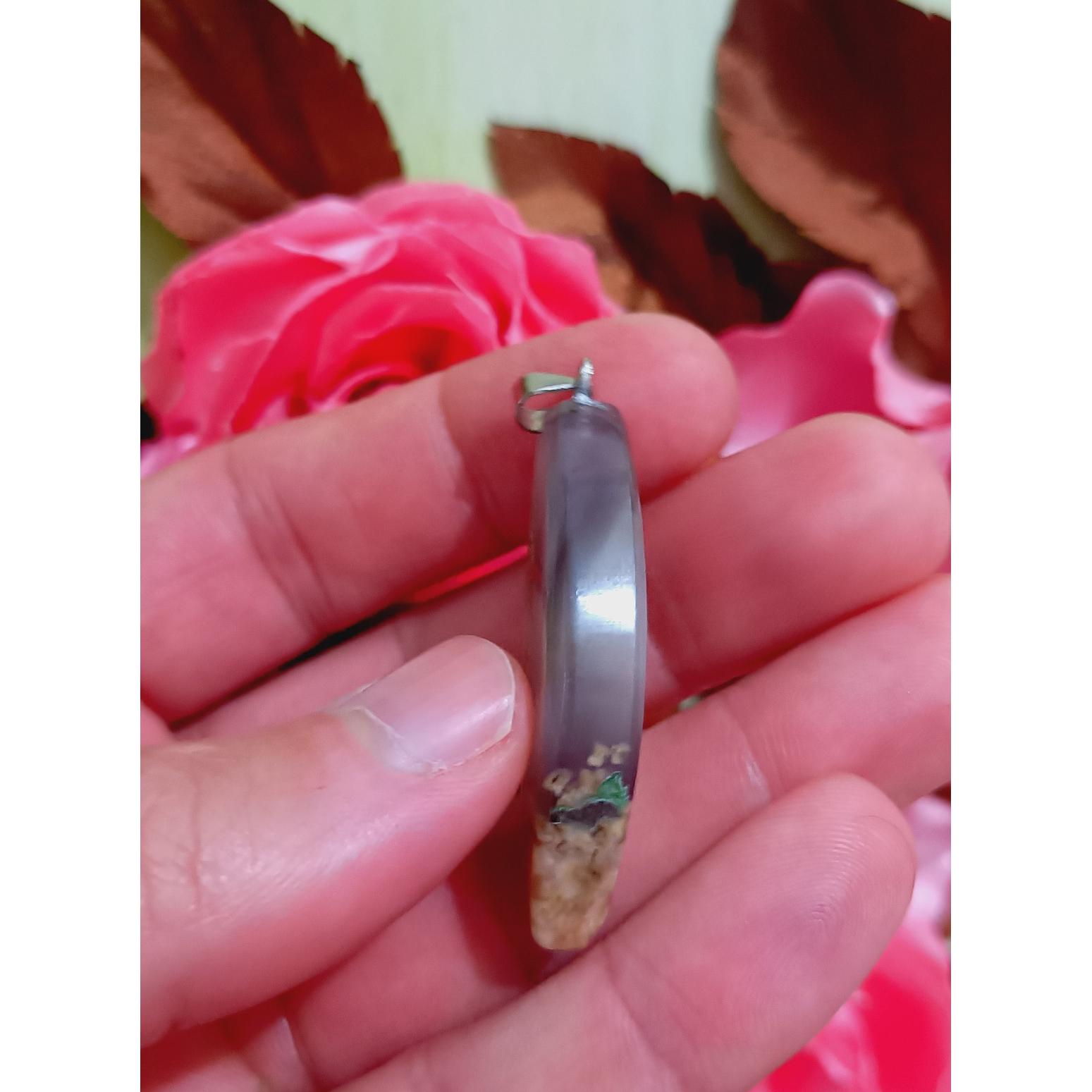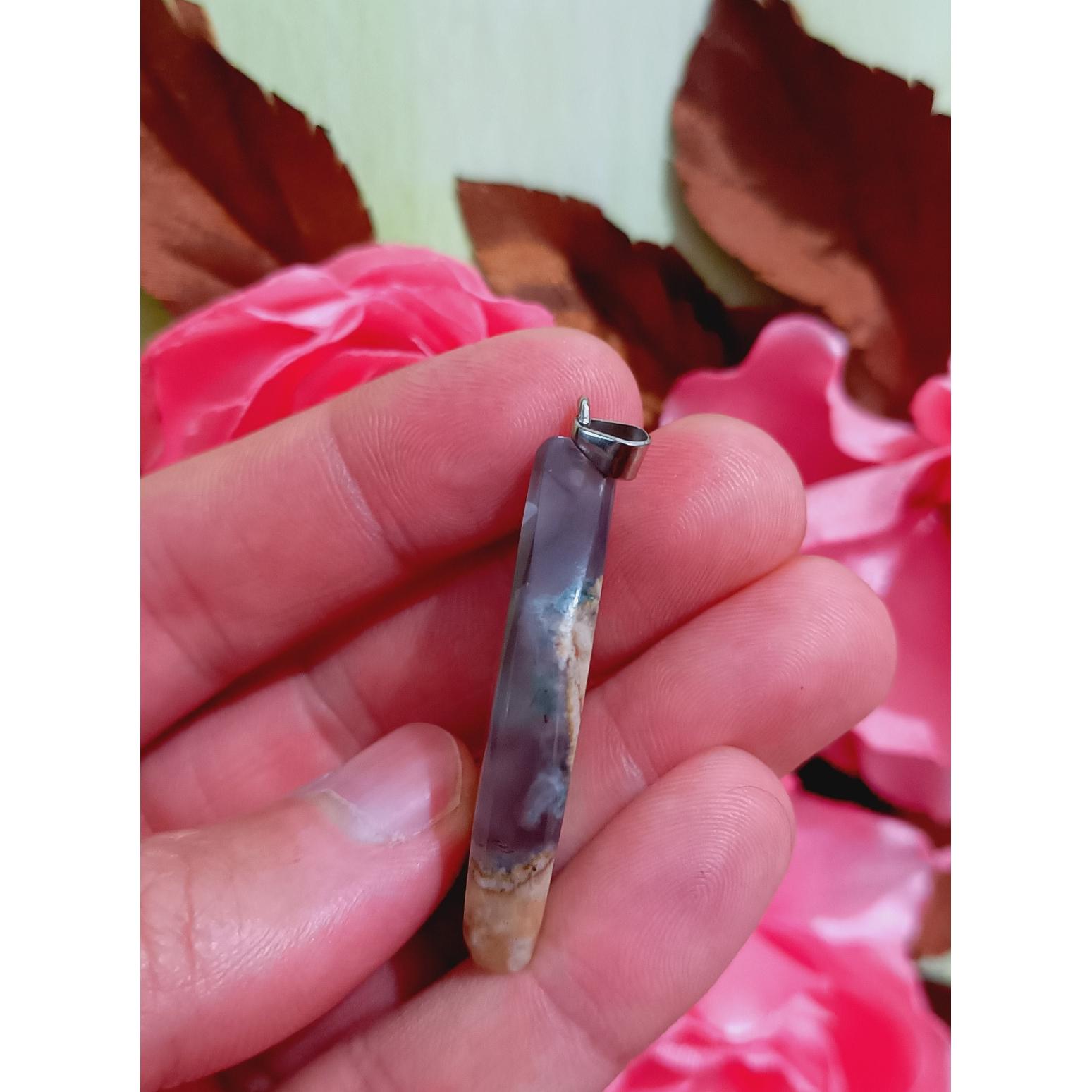 پلاک سنگی عقیق آبدار خزه ای کوارتزی فوق العاده زیبا