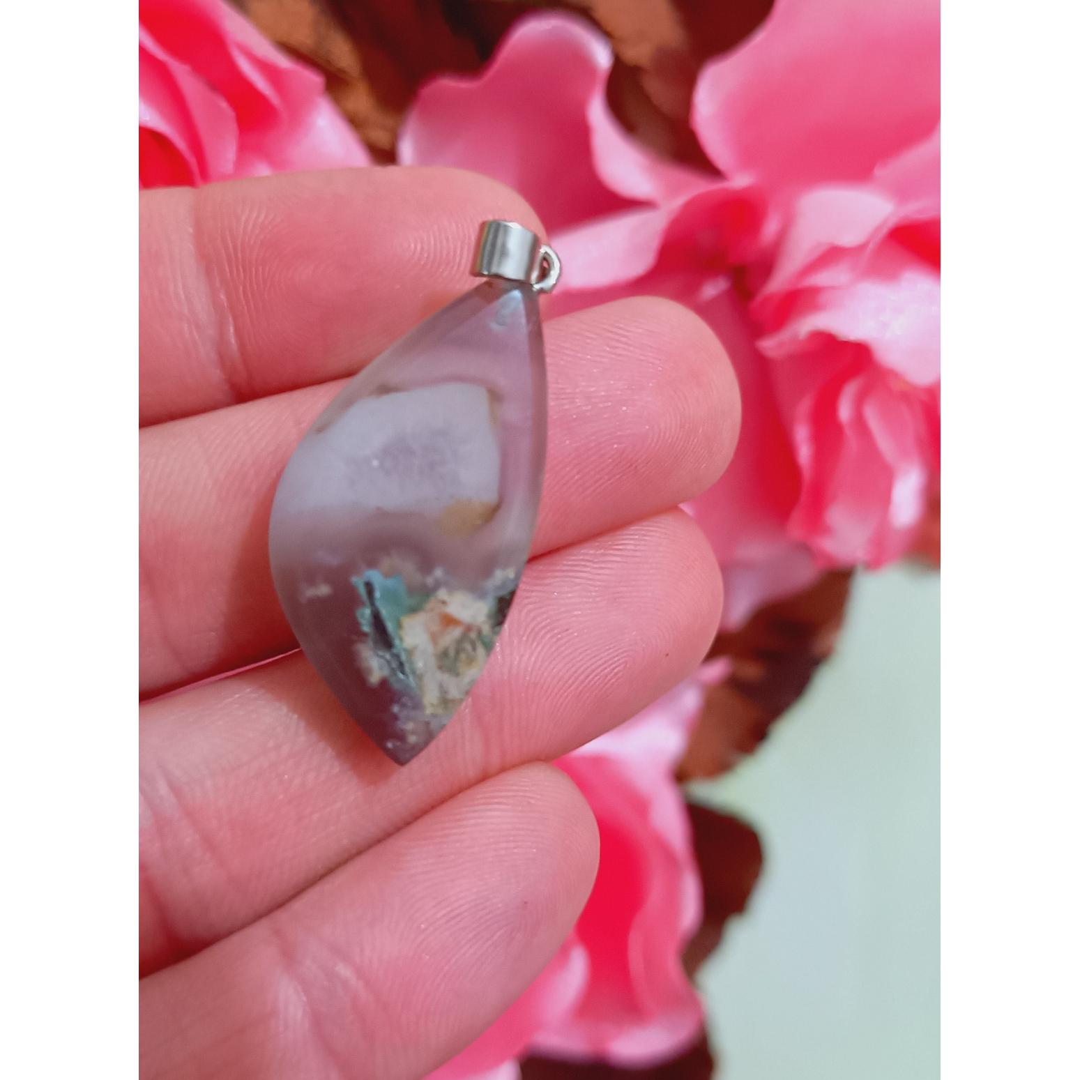 پلاک سنگی عقیق آبدار خزه ای کوارتزی درونی
