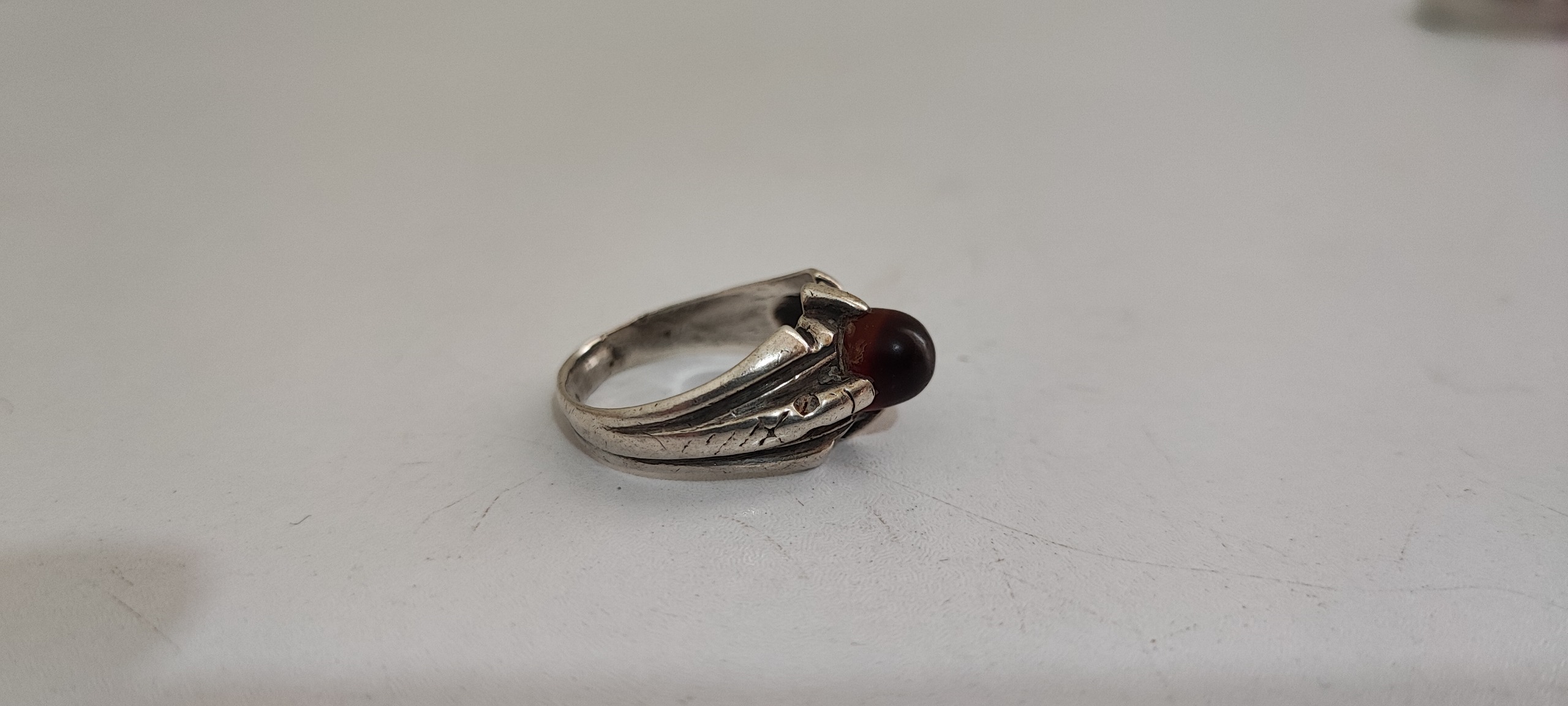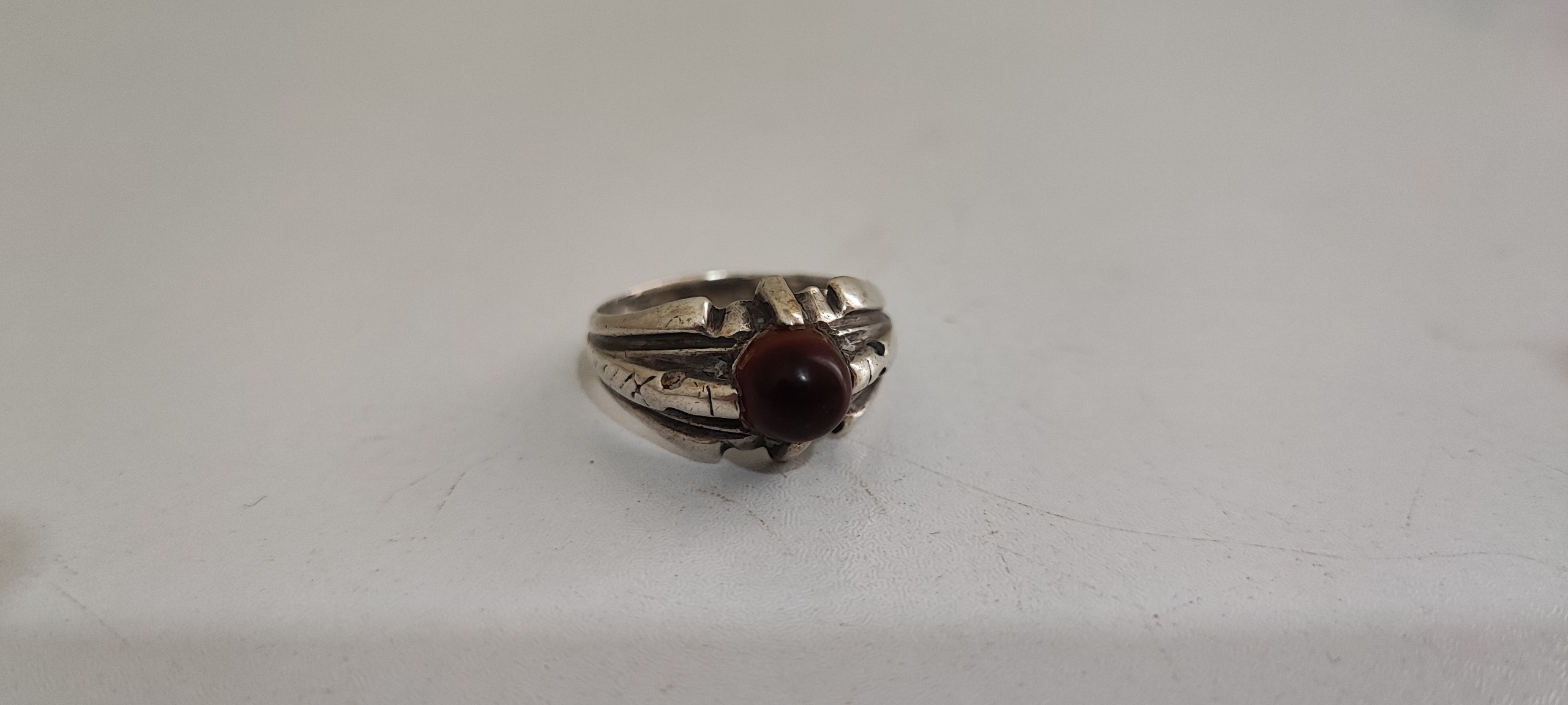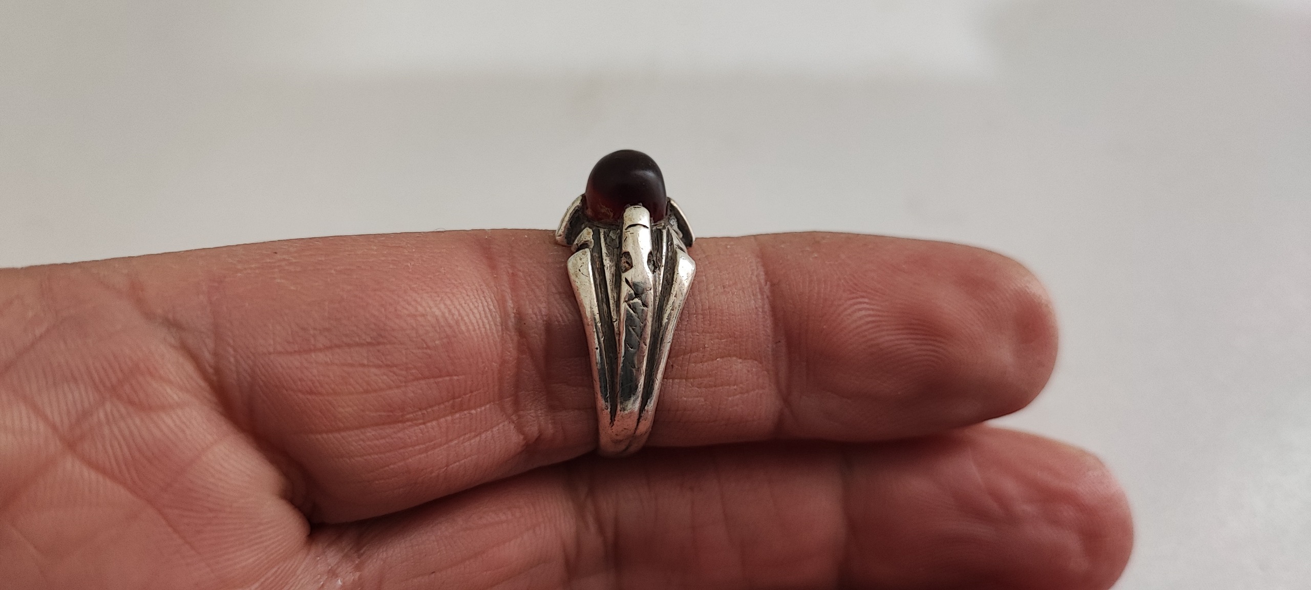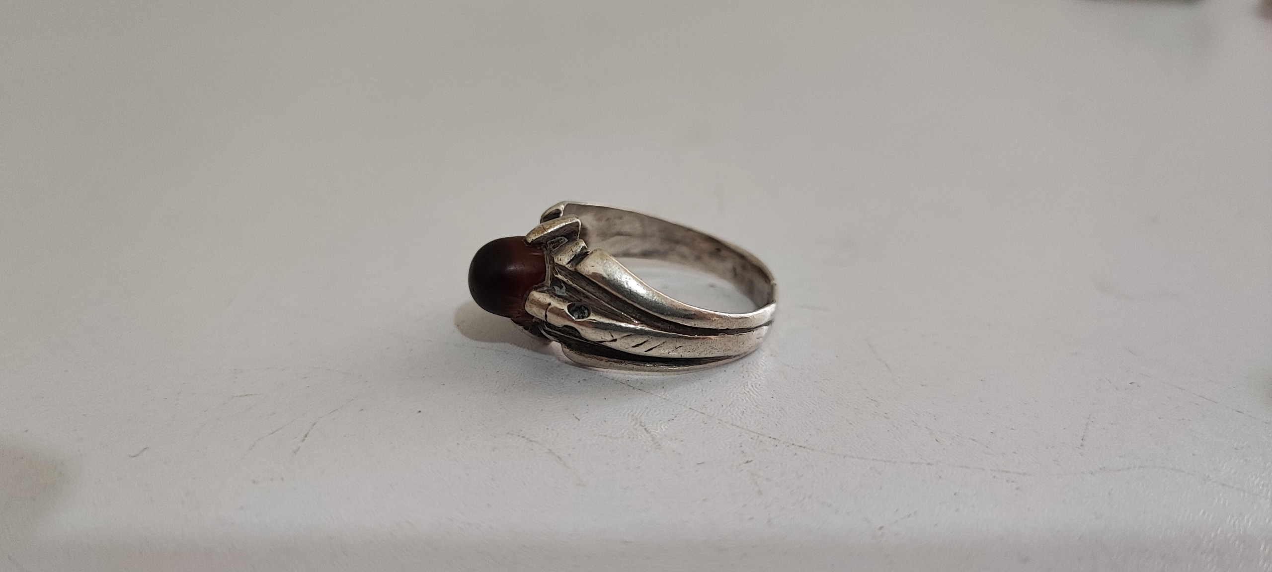 انگشتر عقیق رکاب ماری و دستساز قدیمی