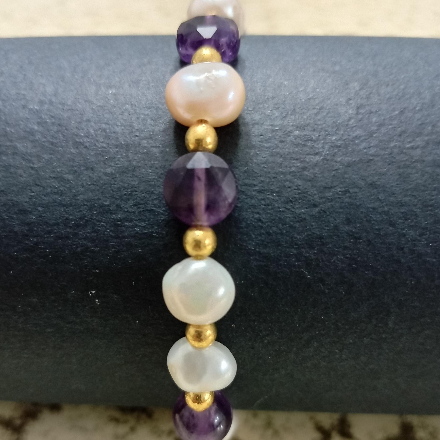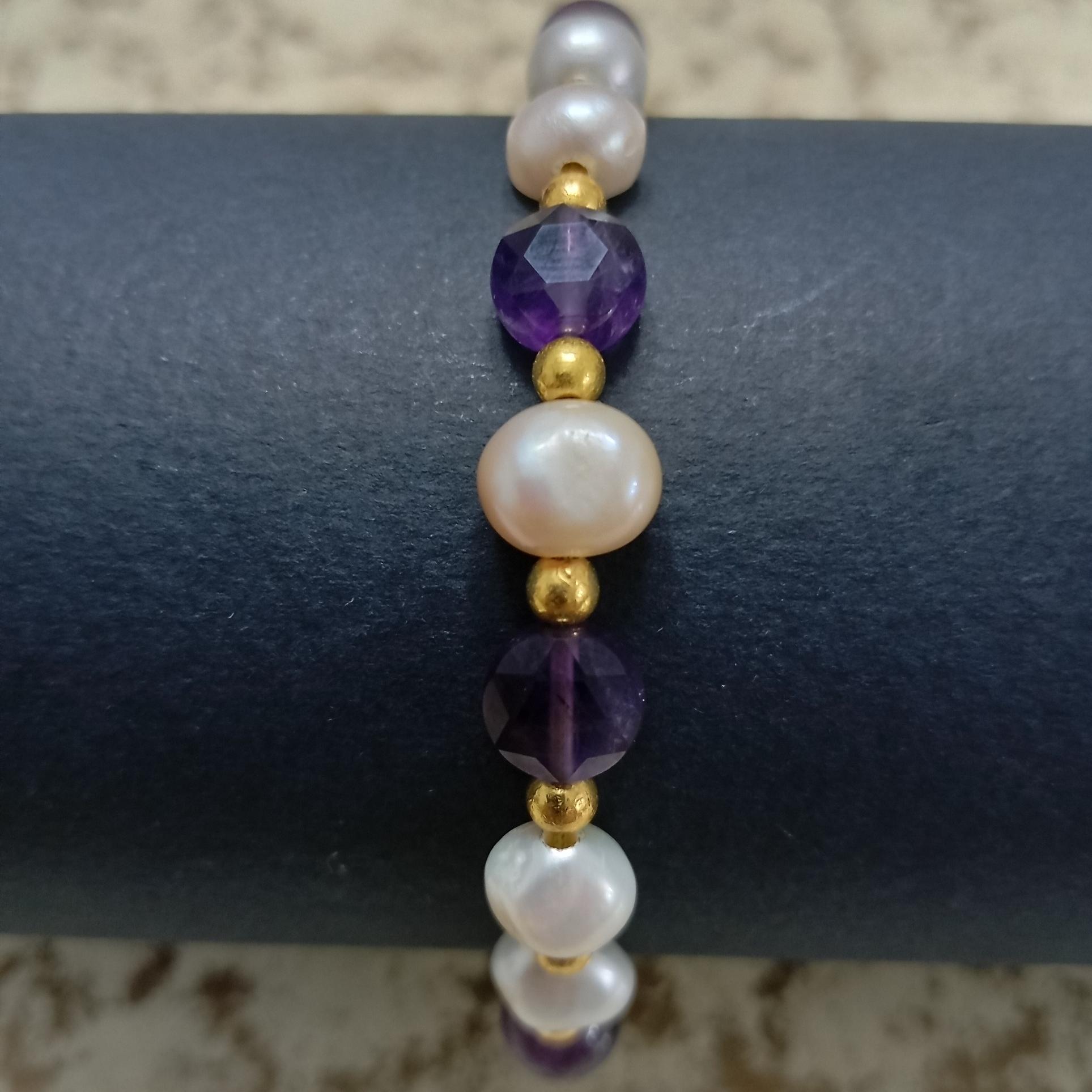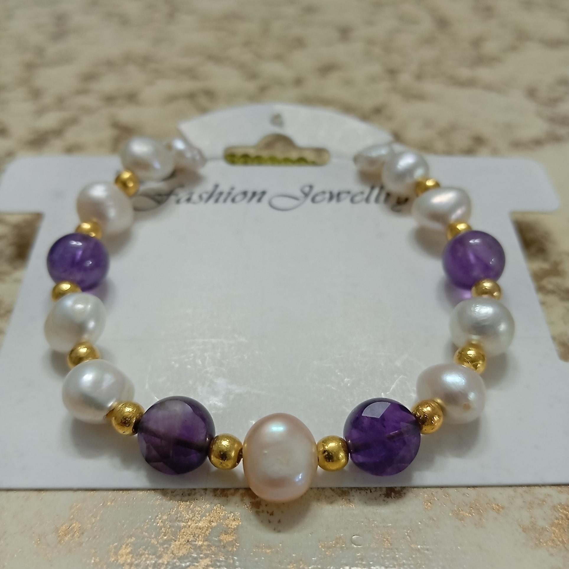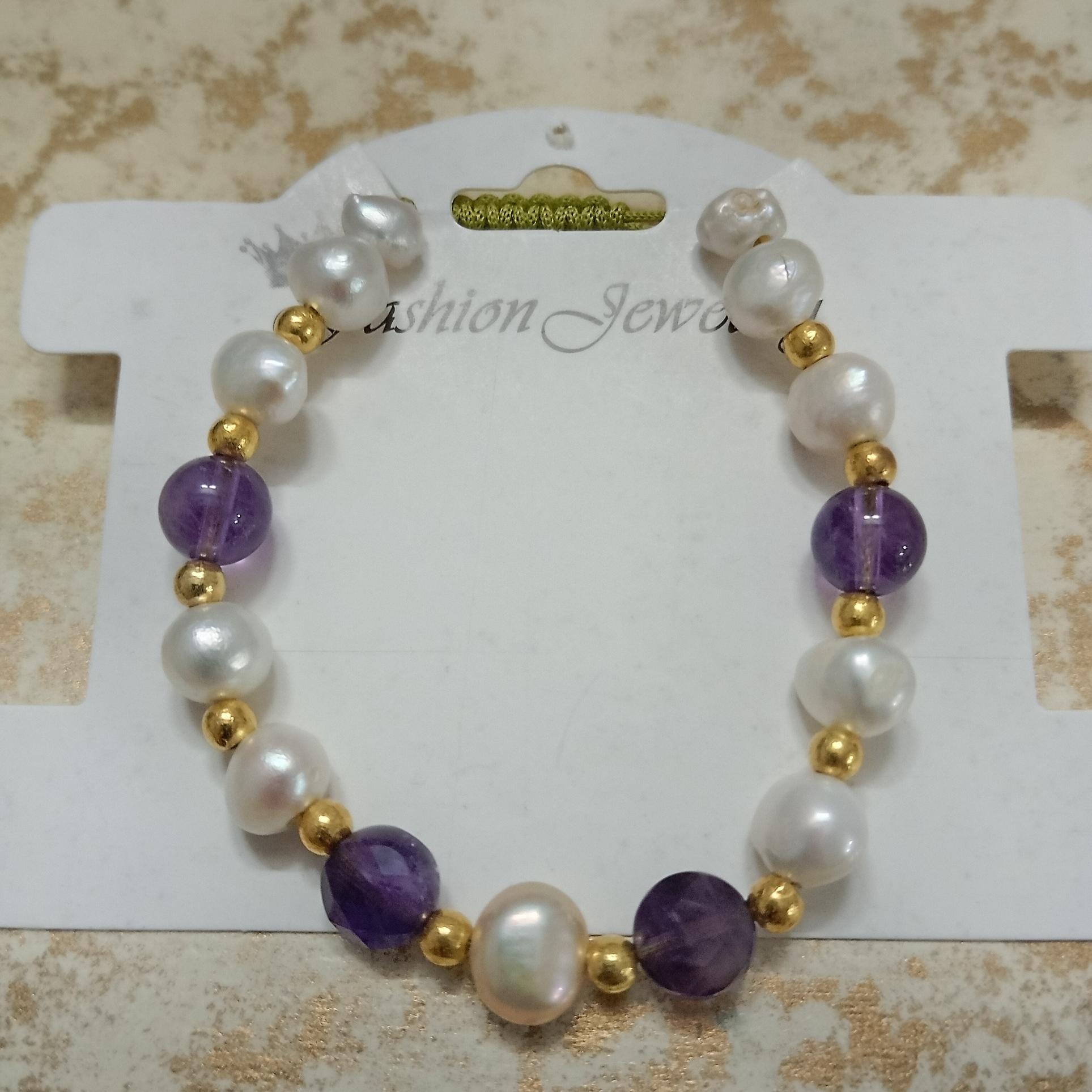 دستبندانرژی مروارید وآماتیست شاهکارانرژی-کدD15