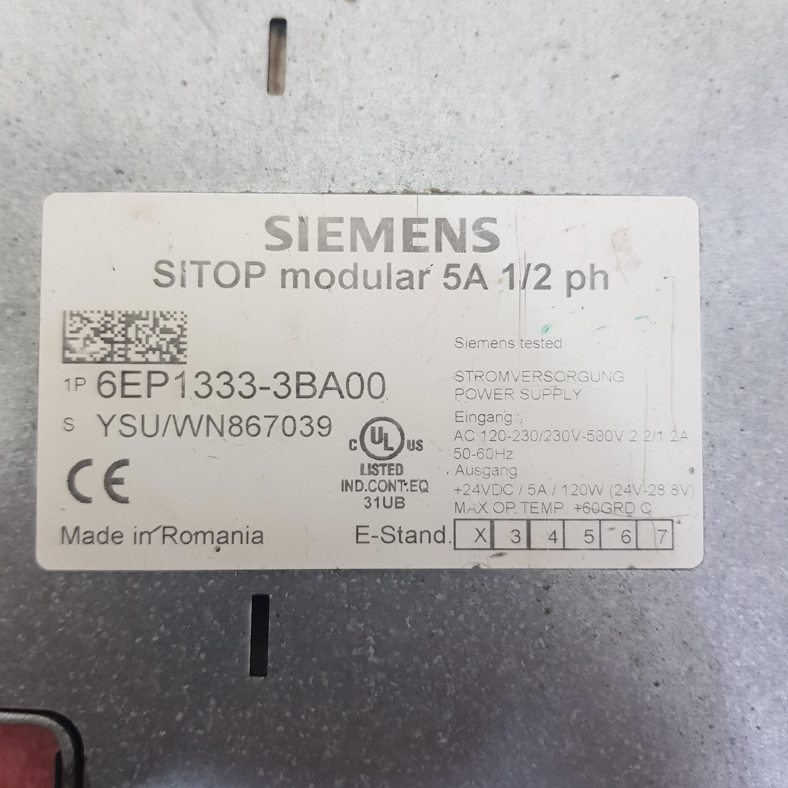 Siemens 6EP1 333-3BA00 SITOP Power Supply, 120/230-500VAC In, 24VDC/5A Out 120W
