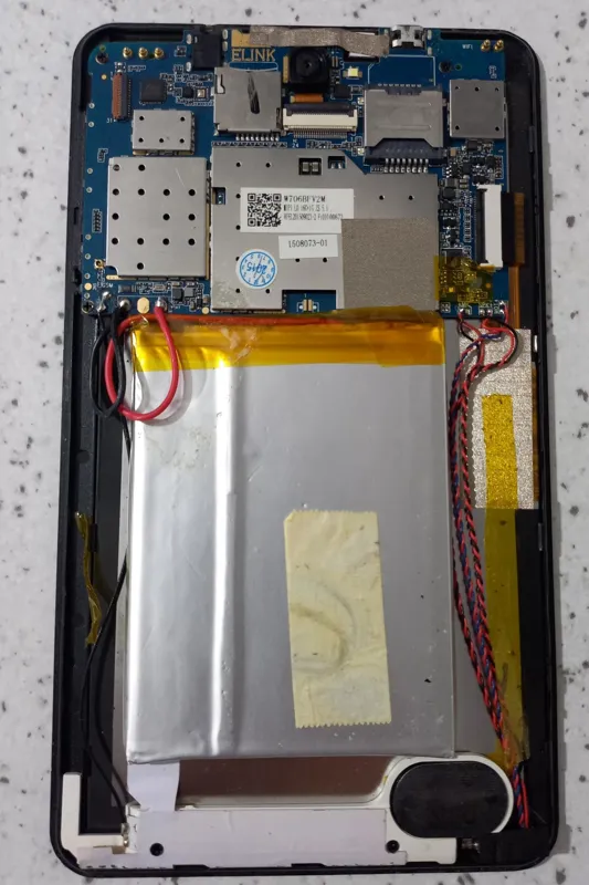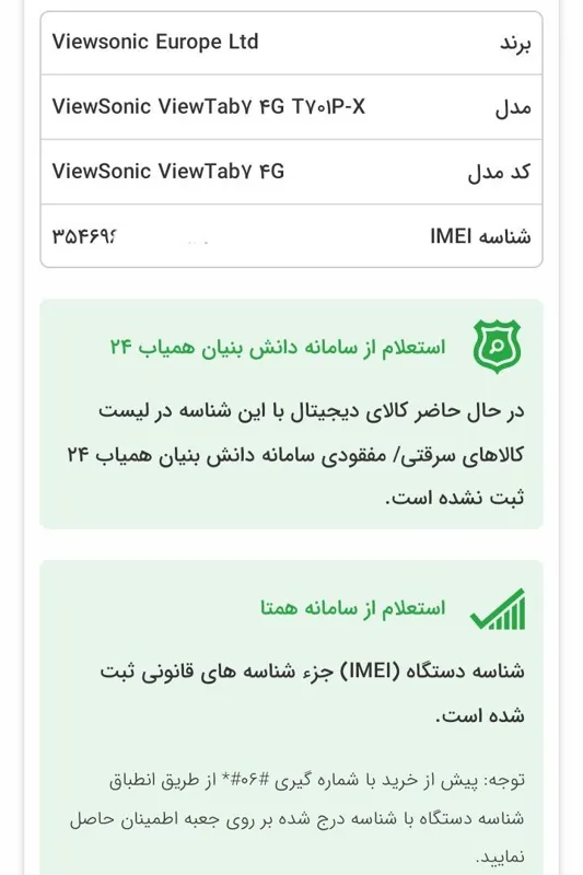 تبلت برد روشن فقط تاچ ندارد، با otg و ماوس تست کردم ال سی دی سالم مطابق تصاویر چند جا پیکسل سوختگی داره باتری معمولی بدون ملزومات ولی ریجستر و ثبت شده در سامانه همتا دکمه پاور گم شده کل اطلاعات ومدل تبلت در تصاویر هست