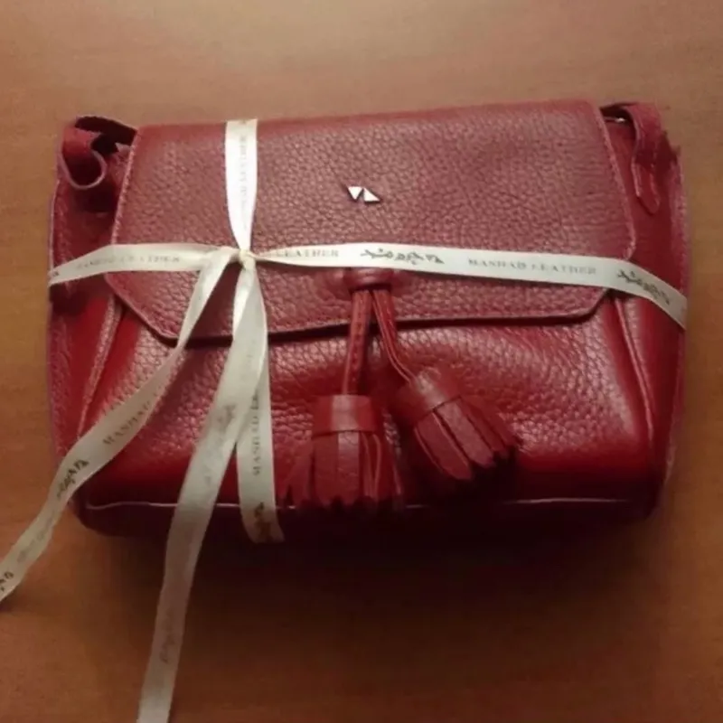 کیف چرم اصل زرشکی قرمز دوشی دستی آلبالویی