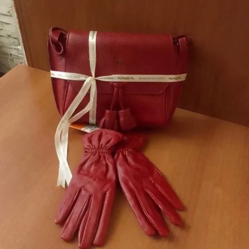 کیف دستکش چرم مشهد اصل قرمز زرشکی دوشی دستی