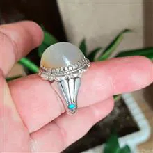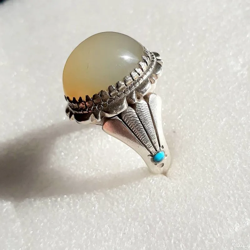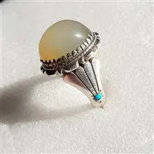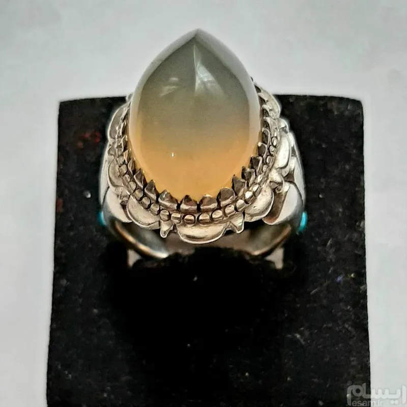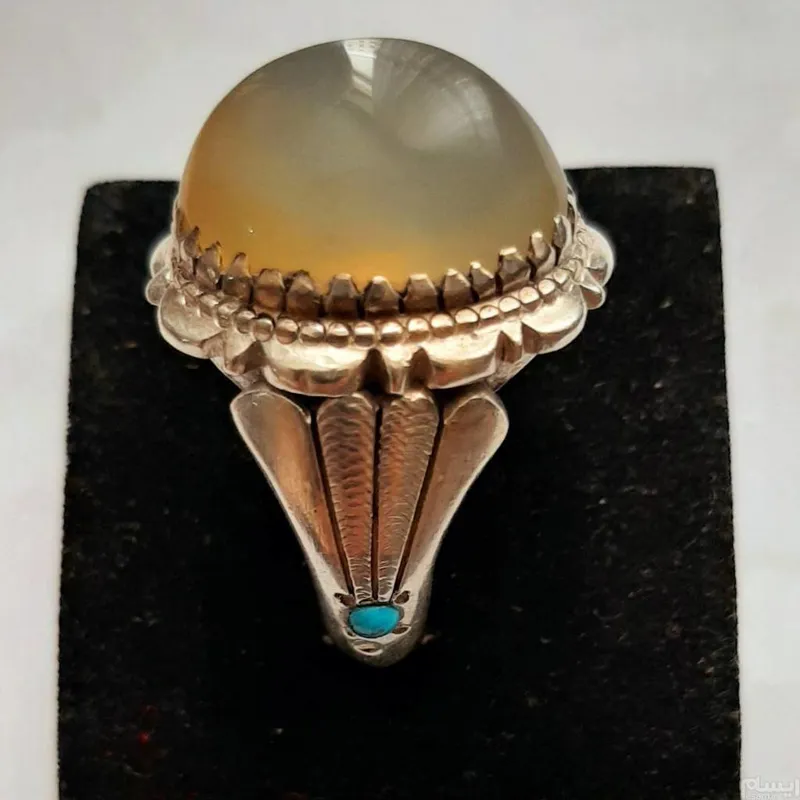 انگشتر عقیق یمنی دودی عسلی رکاب دستساز سید تهرن با مدل دم طاووس مخراج دوعدد فیروزه نیشابور عکسارو ببینید تخفیف ویژه برای همیشه به همه کالاها منظور گردیده، از کالاهای دیگر ما دیدن کنید