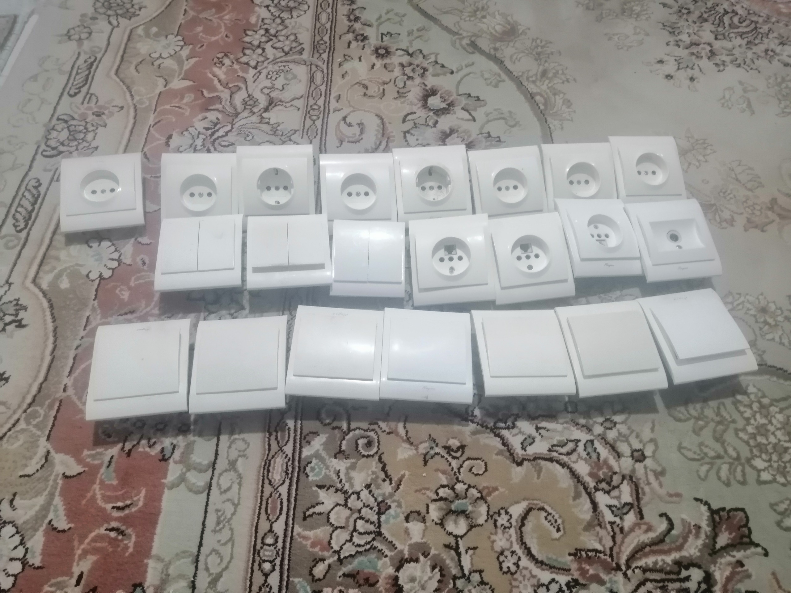 تعداد8عددپریزبرق یک عدد آنتن 3عددپریزتلفن 3عددکلیددوپل و7عددکلیدیک پل مارک همینجور زدم همگی سالم کلا 22عدد قیمت خیلی پایین گذاشتم