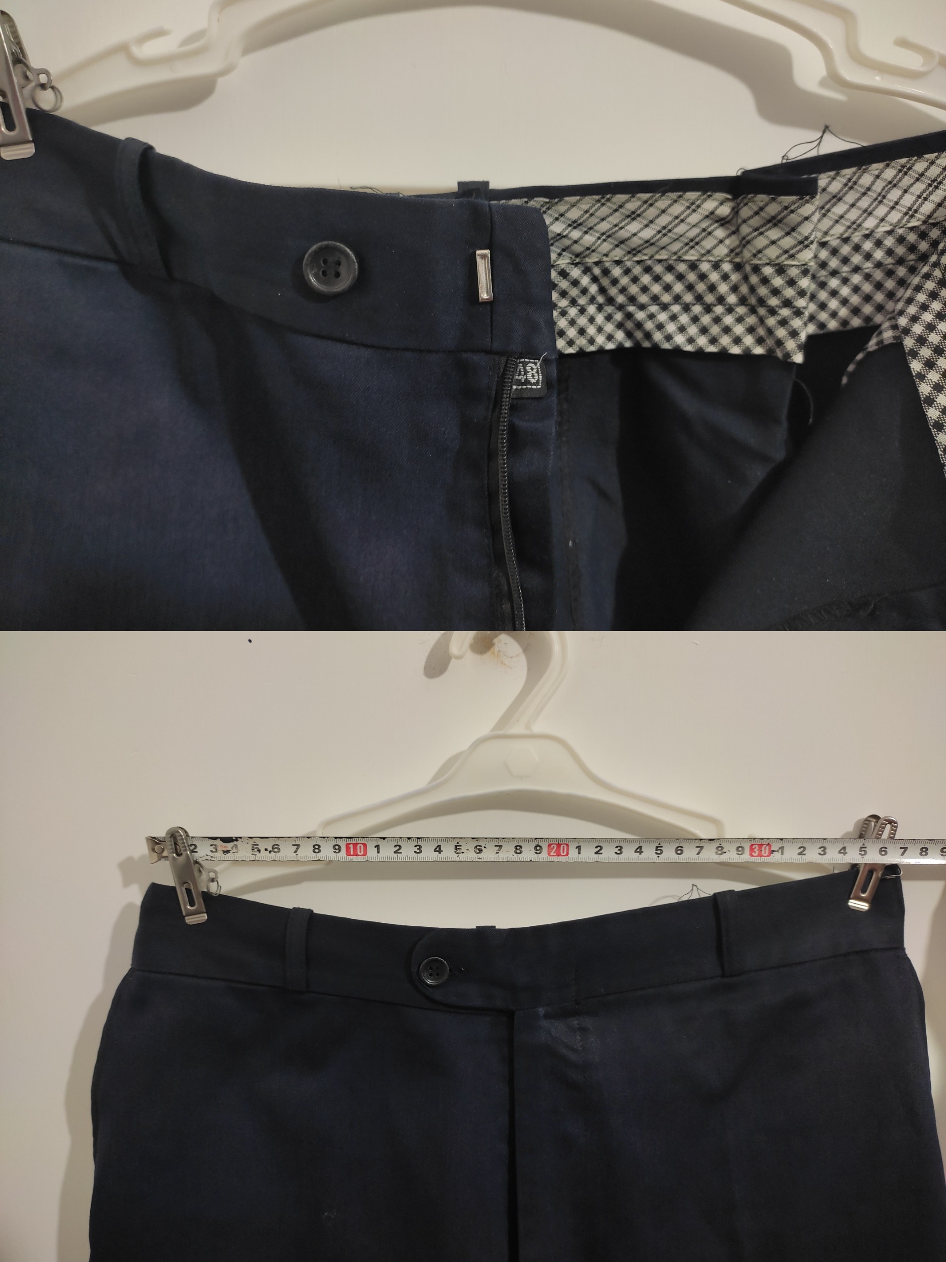 سایز 48 هست ولی همانطور ک در تصاویر مشاهده میکنید توسط خیاط کوچک شده ولی اگر بخواهید همان سایز 48 باشه ، هم امکانش هست نخ محلهایی ک دوخته شده اند رو با بشکاف خیاطی پاره کرد تا ب سایز قبلی خودش برگرده.
