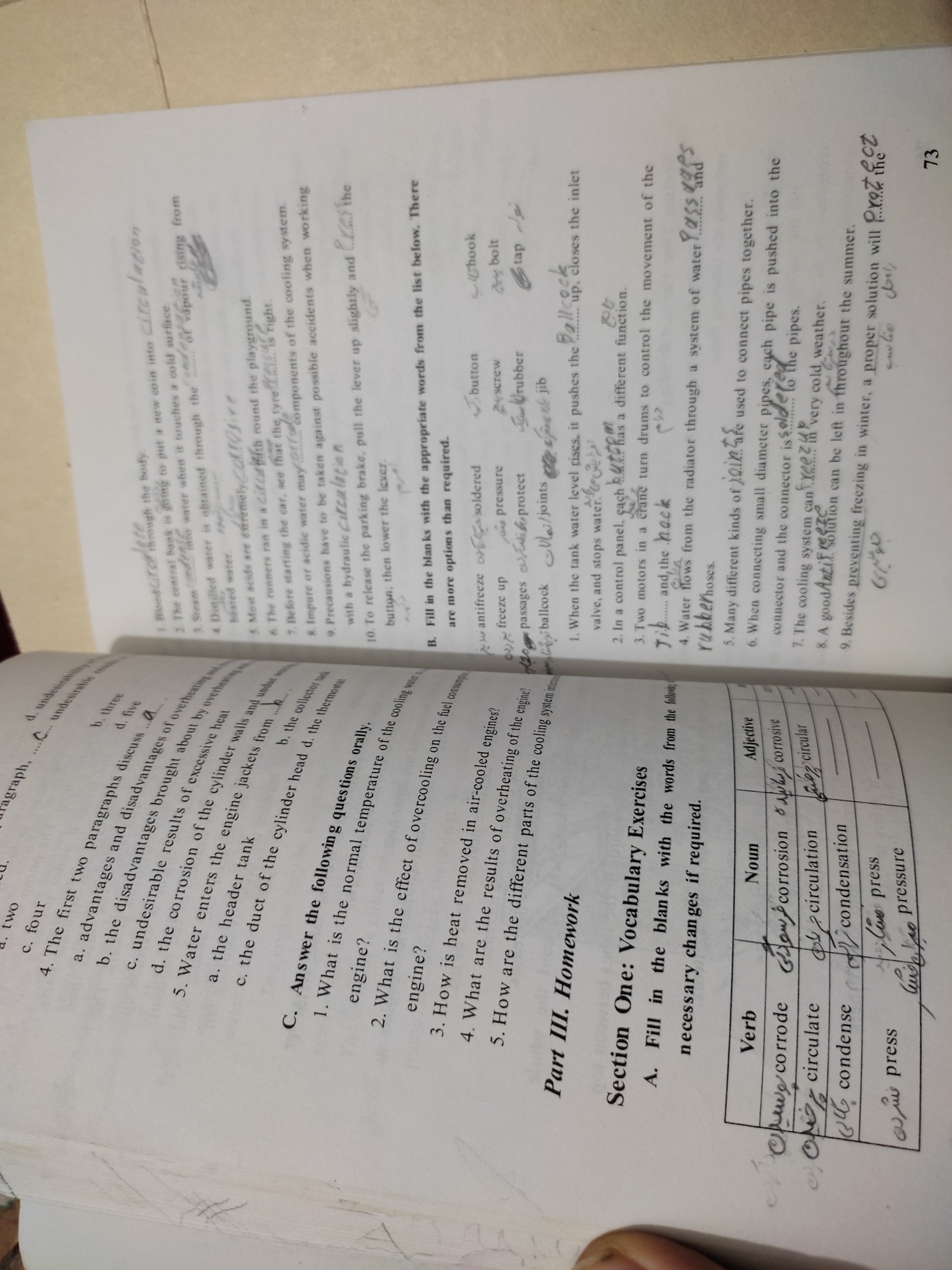 در صفحاتی از کتاب با مداد مانند تصاویر معانی کلمات و نکات نوشته شده اند.
