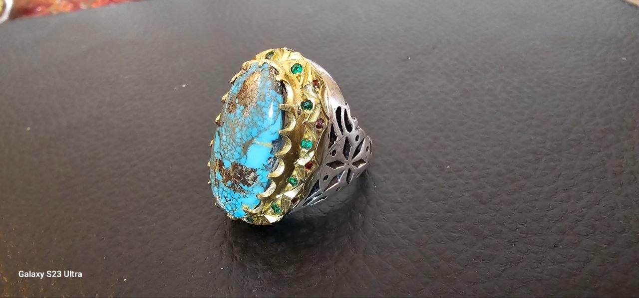انگشترغولپیکرفیروزه نیشابور اصل کلکسیونی وخاص