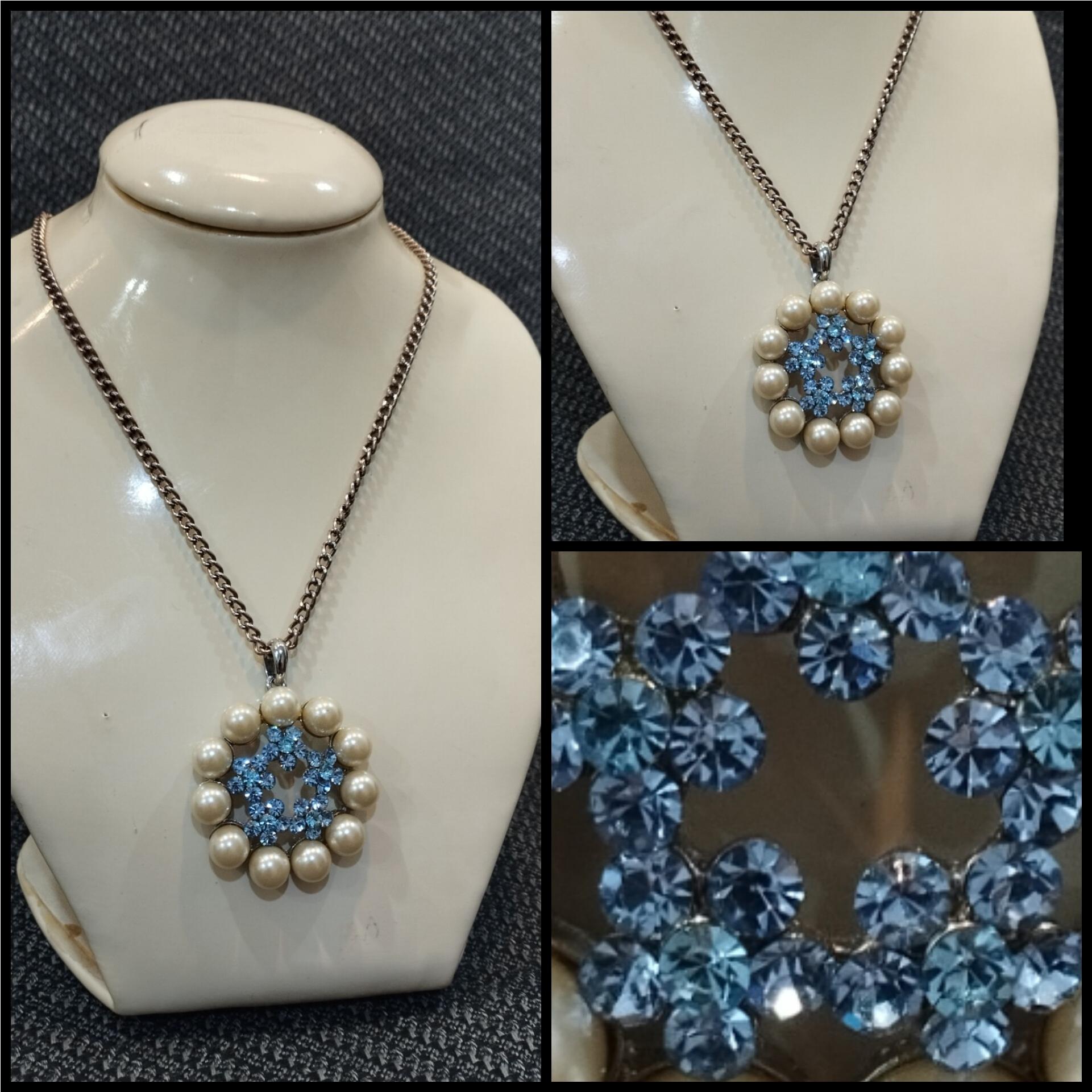 گردنبند بسیار زیبا و شیک مروارید جواهر نشان آبی