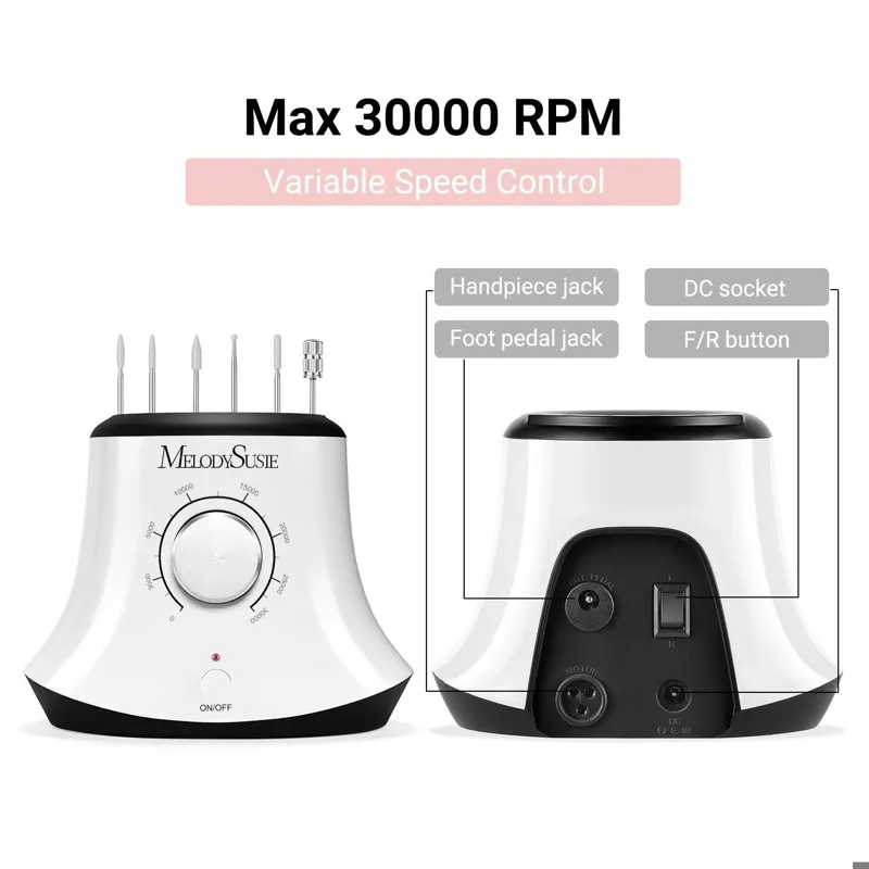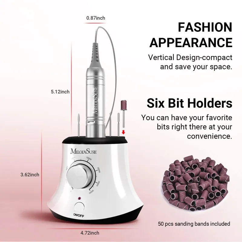 - کیفیت حرفه ای: فایل ناخن برقی MelodySusie هم برای مصارف خانگی و هم برای سالن مناسب است. شما دریافت خواهید کرد: 1 عدد دریل میخکوبی برقی، 1 عدد منبع تغذیه، 1 عدد پدال پا، 6 عدد مته، 56 عدد نوار سنباده و 1 عدد دفترچه راهنمای کاربر. اندازه محصول اصلی: 3.62 اینچ * 4.72 اینچ، اندازه هندپیس: 0.87 اینچ * 5.12 اینچ.کنترل سرعت متغیر 30000 دور در دقیقه