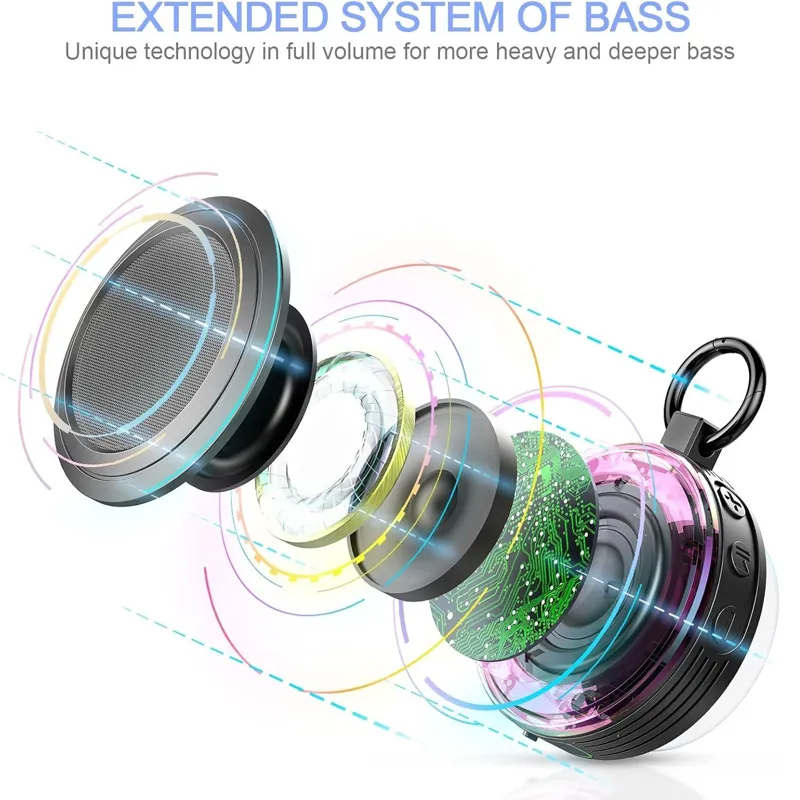 اسپیکر بلوتوث قابل حمل با نمایش نور، اسپیکر دوش ضد آب IPX7 با رادیو FM و میکروفون داخلی، بلندگوهای بلوتوث برای دوش، مسافرت، دویدن، کوهنوردی، کمپینگ و موارد دیگر در فضای باز