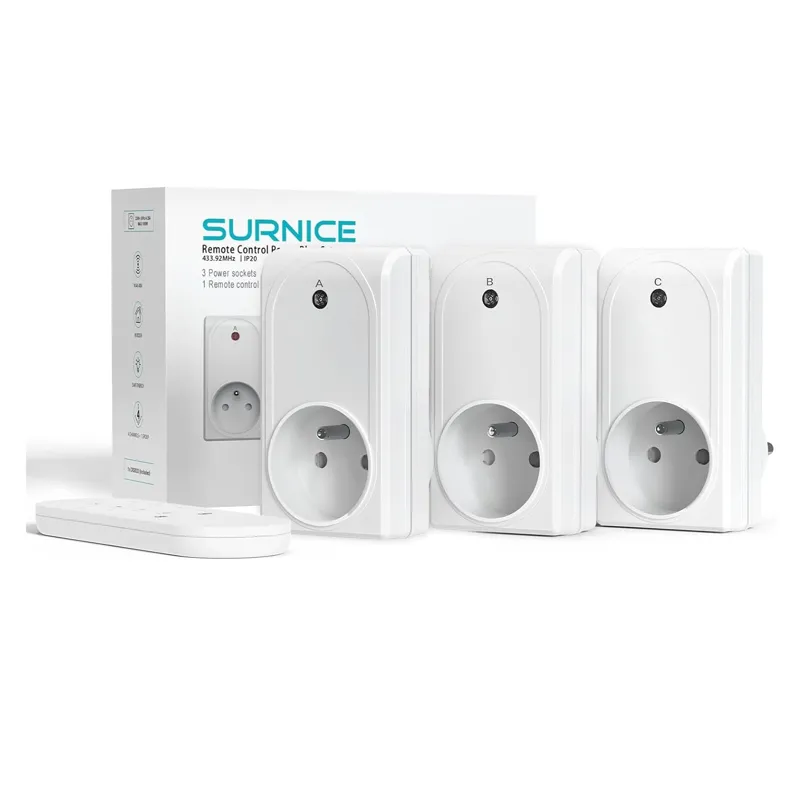 اتوماسیون خانگی:مجموعه پریزهای بیسیم برای کنترل از راه دور پریزهای صعبالعبور زیر یا پشت میز، کابینت، کمد و غیره ایدهآل هستند. یک فرستنده میتواند همزمان 3 پریز را از راه دور کنترل کند. شما میتوانید همه دستگاهها را با یک کلید اصلی روشن و خاموش کنید یا همه دستگاهها را به صورت جداگانه با کلیدهای مختلف به کار بیندازید.