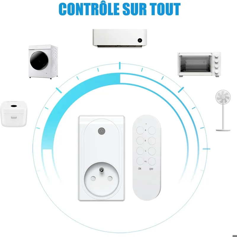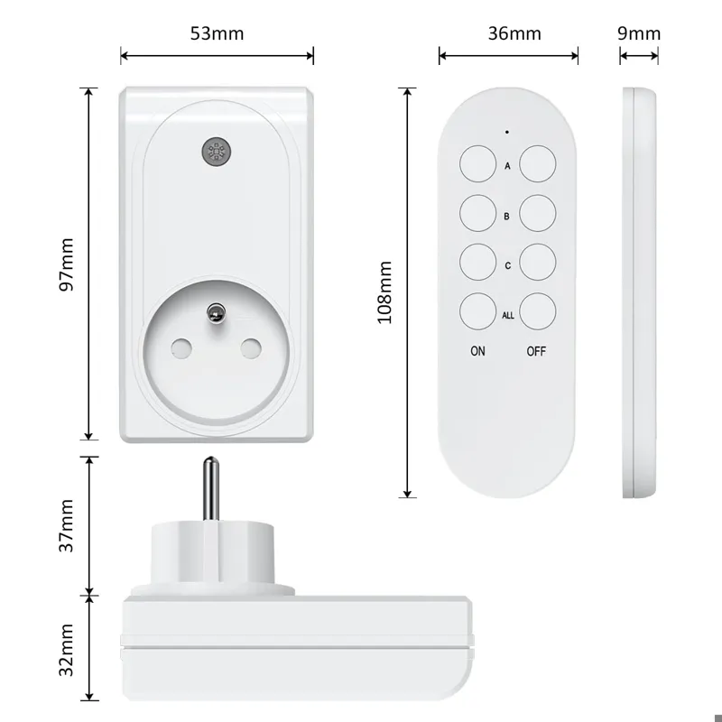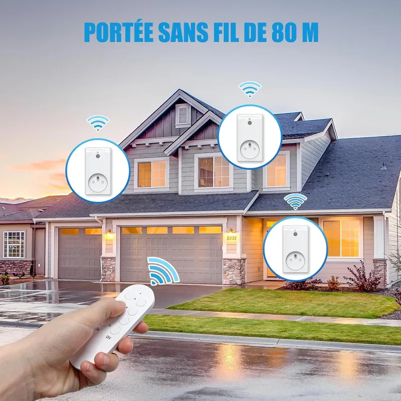 - بدون نیاز به وایفای/گوشی هوشمند: پریزهای رادیویی با کنترل از راه دور. هر پریز میتواند تا 1000 وات برق را در خود نگه دارد، بنابراین میتوانید تمام دستگاهها را با این پریز کنترل کنید. برای تزئینات جشن، نورپردازی، لامپها و لوازم خانگی.