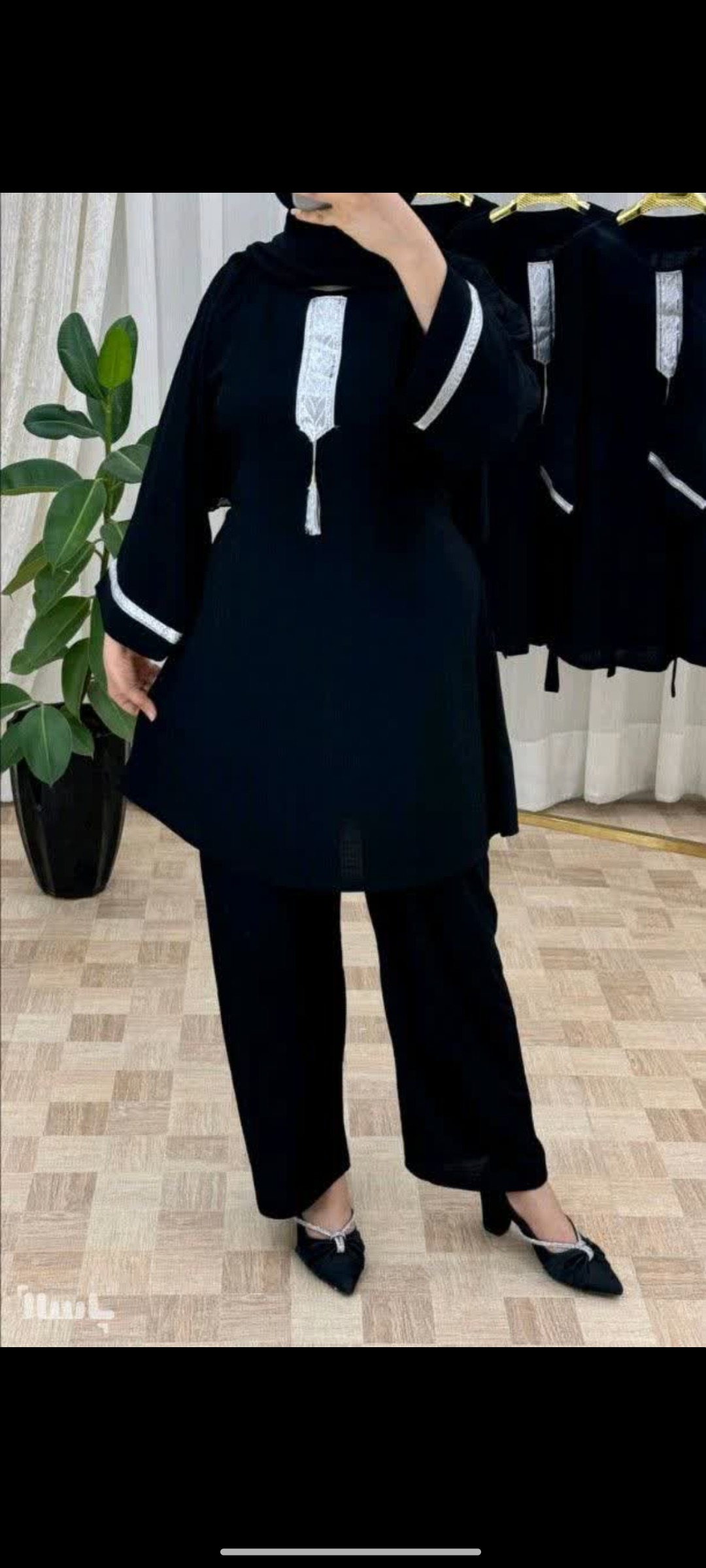 تونیک شلوار میرسه فری سایز ازسایز 36الی الی 60میخوره کمربند داره سایز میشه با کشسانی بالا تک رنگ مشکی 650ت