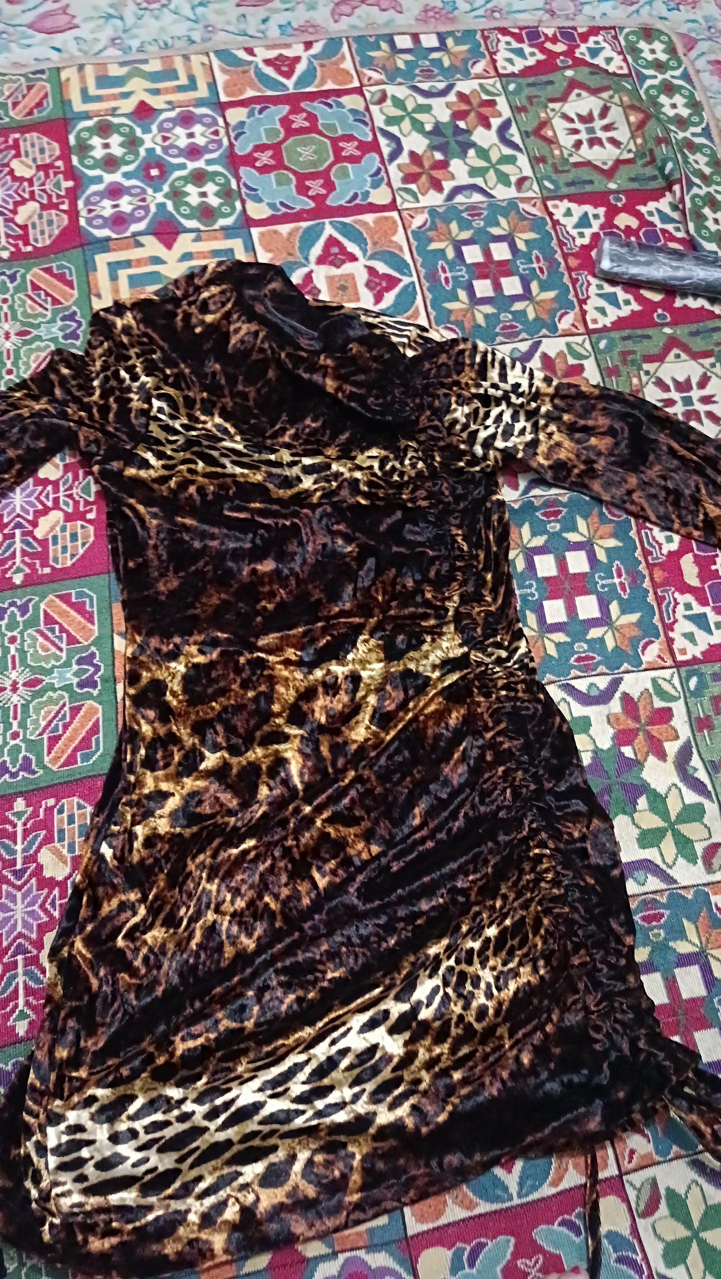 تونیک مجلسی زنانه شیک مخمل نانسی در دورنگ مشکی و پلنگی موجوده پایین کار گره ای فوق العاده تو تن شبکه فری سایز هست قیمت 530تزیرسارفوانی کبریتی داخل حوله فری سایز تا 48میخوره 420ت