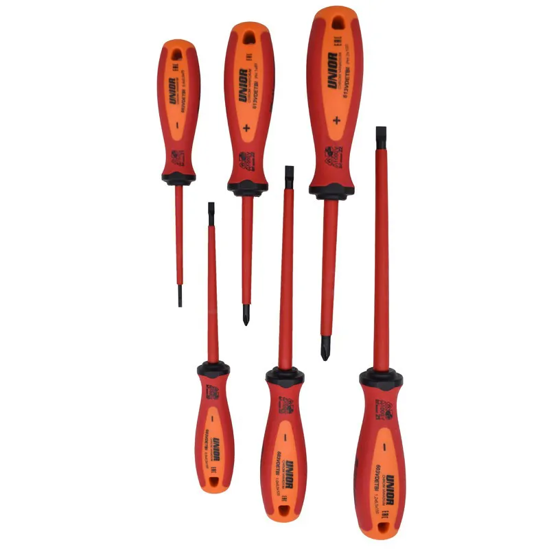 اولین کارخانه Unior در سال 1919 شهر Zreče کشور یوگوسلاوی سابق تاسیس شد. در حال حاضر محصولات این شرکت متناسب با بالاترین استاندارد های موجود اروپا و تکیه بر پیشرفته ترین ماشین آلات روز دنیا و نرم افزارهای پیچیده مدل سازی کامپیوتری با استفاده از فولاد با خواص خاص و سختی بسیار بالا جهت ارائه به مصرف کنندگان حرفه ای ابزار (با طول عمر بسیار بالا ) در حال تولید می باشد . ابزارهای تولیدی این شرکت بر اساس استاندارهای ISO ،DIN و VDE تولید می گردند. فولاد خاص مورد مصرف جهت ساخت محصولات از کارخانه مشهور فولاد سازی Štore که جزو شرکای شرکت یونیور می باشد تامین می گردد. امروز یونیور با تولید سالانه بالغ بر 7.6 میلیون قلم ابزار در 3000 دسته بندی متفاوت جزو پنج تولید کننده معظم ابزار دستی با کیفیت بالا در اروپا می باشد. توجه به نیازهای کاربران ، بهبود مستمر مواد، راه حل های ارگونومیک جدید و توجه به تمام جنبه های ایمنی، این شرکت را به عنوان شریک واقعی کاربران حرفه ای ابزار در چند دهه قرار داده است و محصولات این شرکت در سراسر اروپا ، ایالات متحده ، آمریکای لاتین ، استرالیا ، روسیه ، چین و خاورمیانه در حال عرضه می باشد. پیچ گوشتی مدل 603CS6VDE-TBI از تولیدات برند یونیور می باشد که از روکش عایق برق 1000 ولت بهره برده و آن را به گزینه ای عالی جهت مصارف الکتریکی و کار با برق تبدیل نموده است و از کاربر در برابر شوک های الکتریکی و برق گرفتگی احتمالی محافظت می نماید . دسته ارگونومیک سه لایه (TBI) این محصول طوری طراحی شده است تا از آسیب به دست محافظت شود و سطح تماسی بزرگ دسته با دست موجب ایجاد حداکثر گشتاور شده است . همچنین تیغه ها از آلیاژ کروم مولیبدن ساخته شده اند . این محصول شامل 2 پیچ گوشتی چهار سو با سایز های PH1x80 و PH2x100 و چهار پیچ گوشتی دو سو در سایز های 0.4x2.5x75 ، 0.8x4x100 ، 1x5.5x125 و 1.2x6.5x150 میباشد.