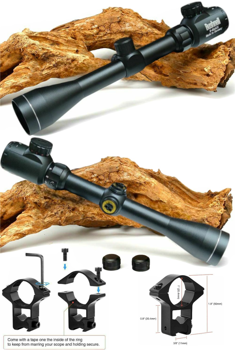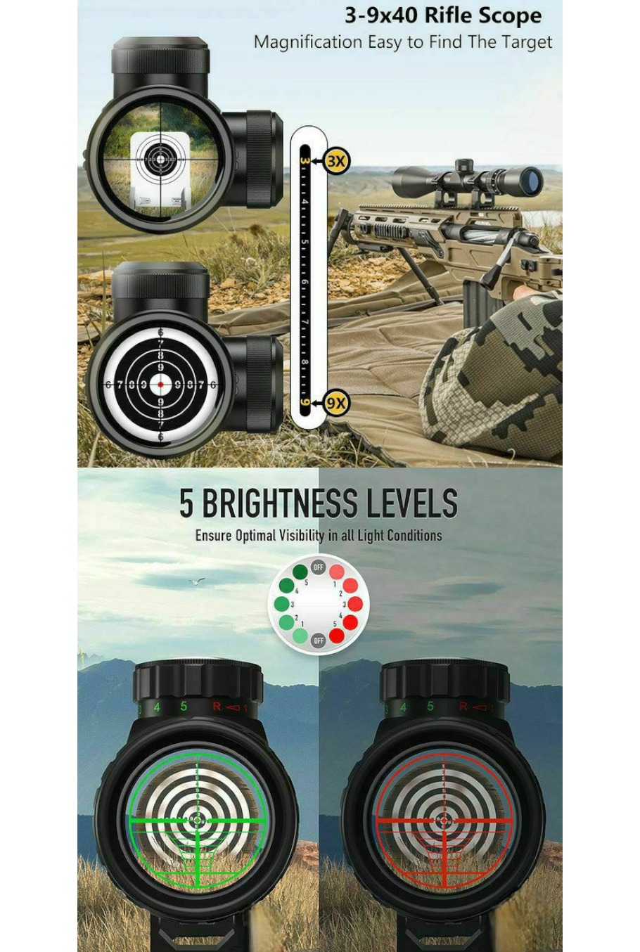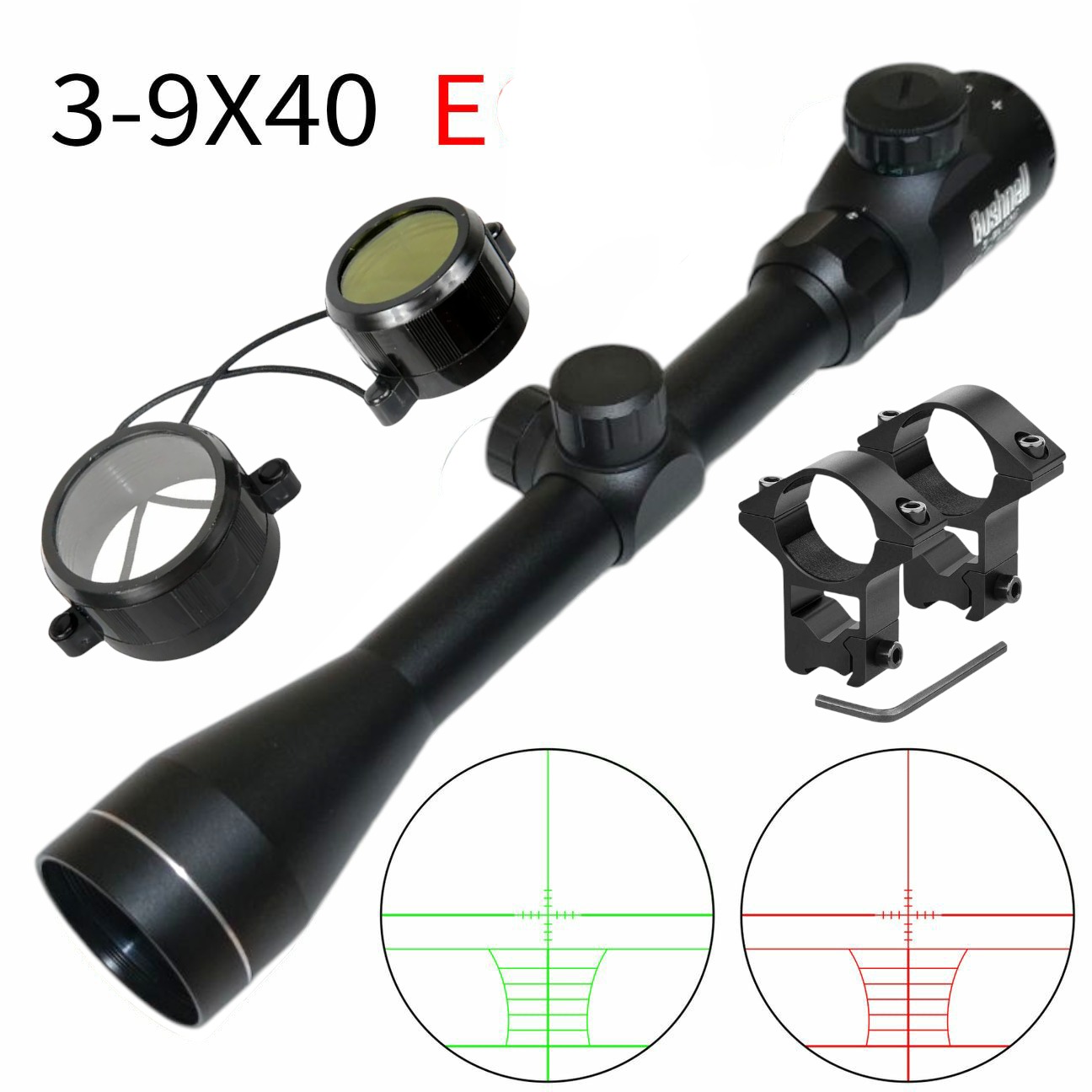 دوربین تفنگ بادی برند Bushnell مدل 40×9ـ3 با رتیکل نوری قرمز و سبز رنگ با قابلیت تنظیم شدت نور 5 مرحله ای، مناسب جهت انواع تفنگ های بادی.