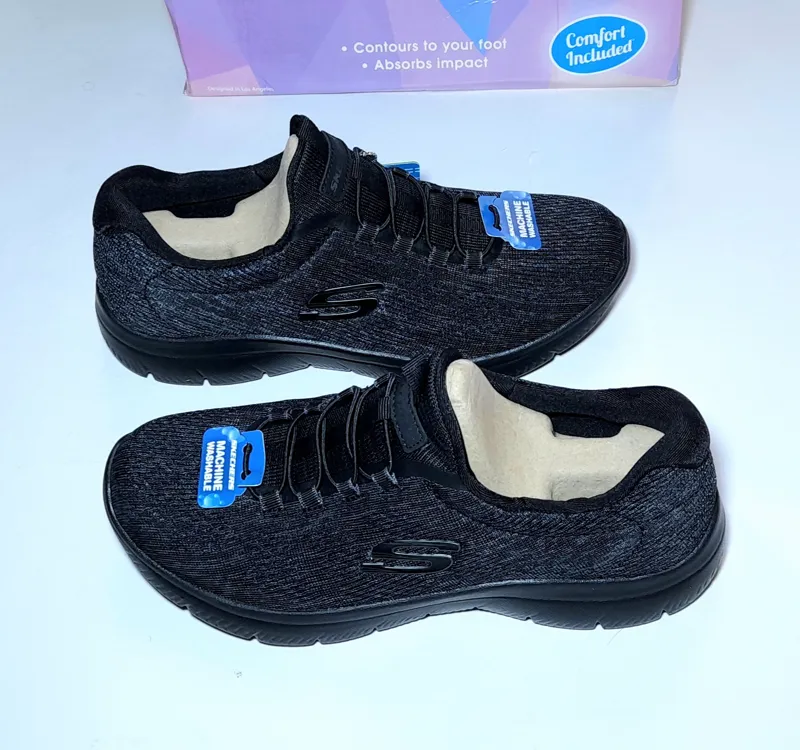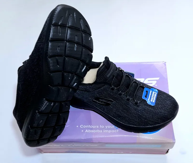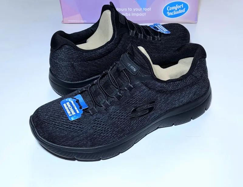 مدل Summits از برند معتبر اسکچرز، علاوه بر رنگ مشکی و داشتن بند کشی، فوق العاده سبک و راحت بوده و با کفی و زیره بالشتکی، رویه پارچه ای تهویه پذیر و ساختار انعطاف پذیر خود، فوق العاده راحت و مناسب پیاده روی است.