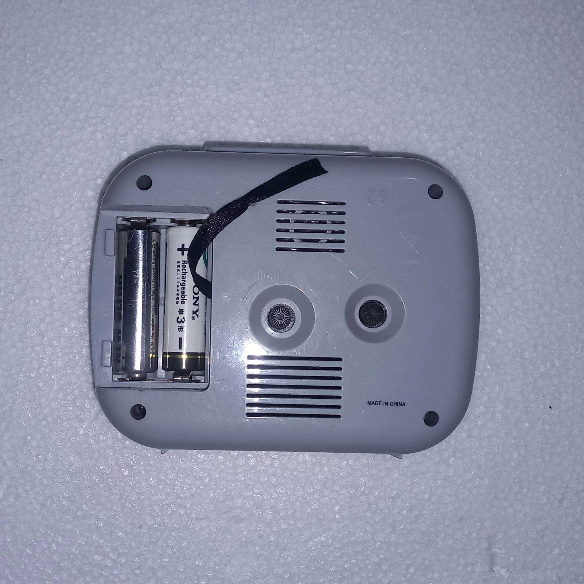 ساعت زنگ دار و نور هم که صفحه رو روشن بشه هم داره و زنگ های مختلف داره اذان و دو مدل دیگه فک کنم و دوعدد باتری قلمی ساعت دیواری بهش میخوره