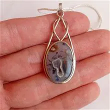 گردنبند زیبای نقره دست ساز با سنگ عقیق شجر